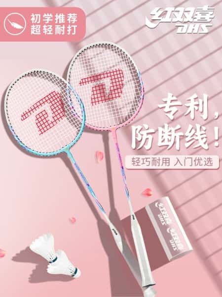 红双喜羽毛球拍儿童小学生3-12岁初学者双拍成人正品耐用2支装