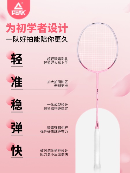 官方匹克羽毛球拍正品旗舰店单双拍全碳素纤维超轻女生耐打用套装