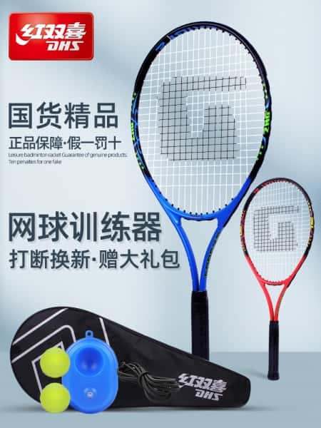红双喜正品网球训练器单人打带线回弹初学者儿童自练神器网球拍