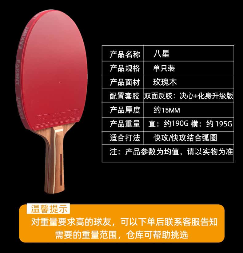 乒乓球拍七星八星反胶快攻7星8星碳素短柄直拍横拍长柄兵乓成品拍
