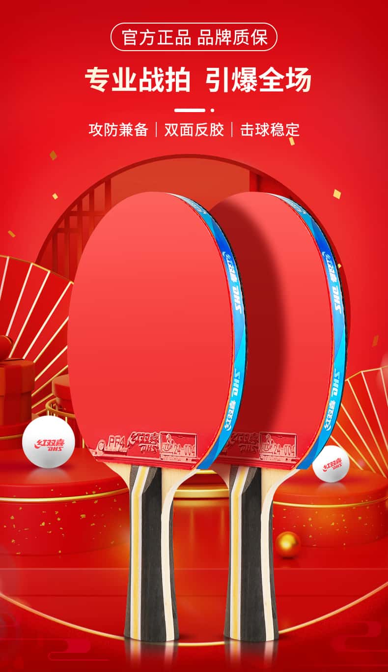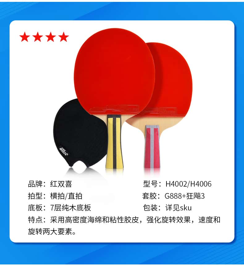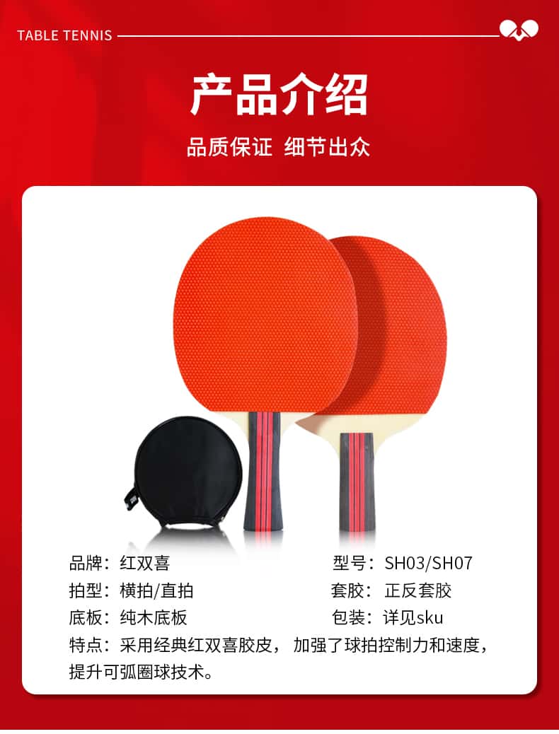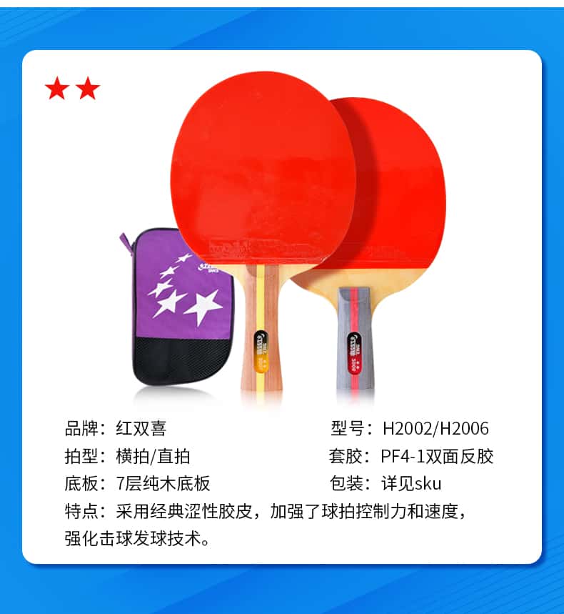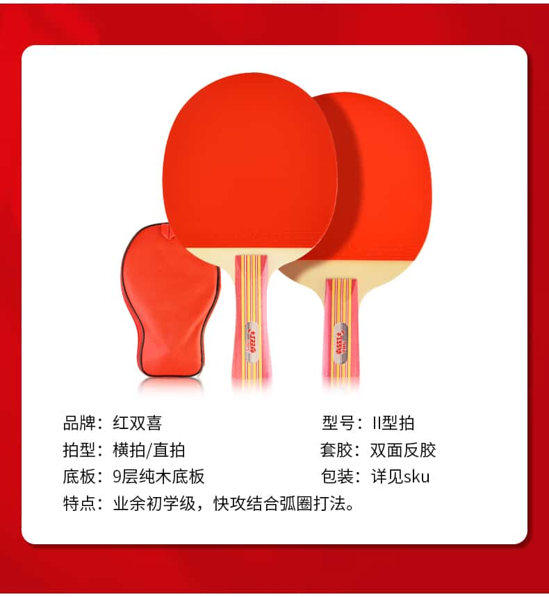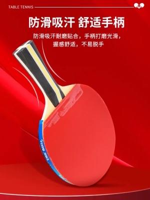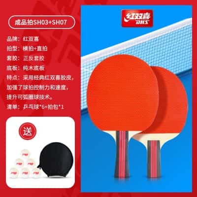 红双喜乒乓球拍高弹力一套小学生专用初学者单拍一只儿童横拍球拍