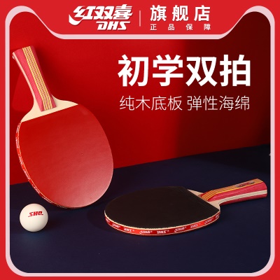 红双喜乒乓球拍双拍初学者儿童小学生直拍横拍兵乓拍成品拍套装