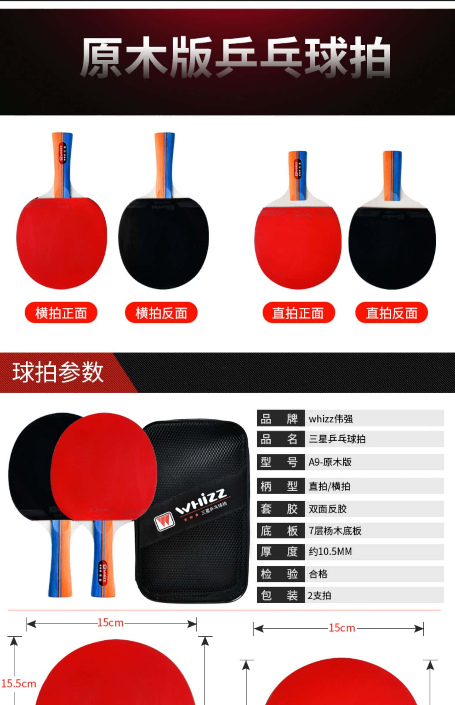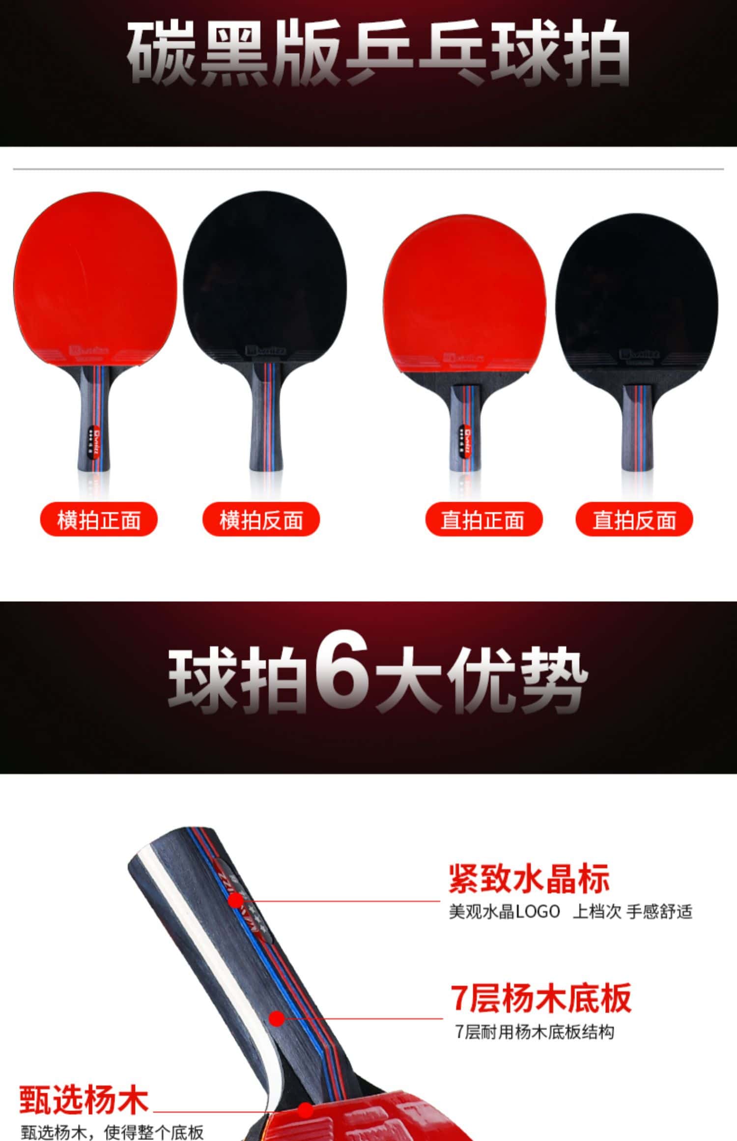 乒乓球拍七星八星反胶快攻7星8星碳素短柄直拍横拍长柄兵乓成品拍