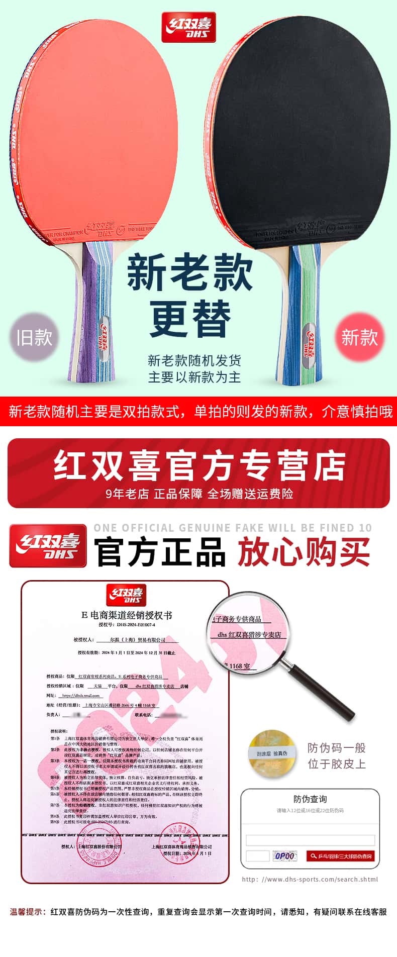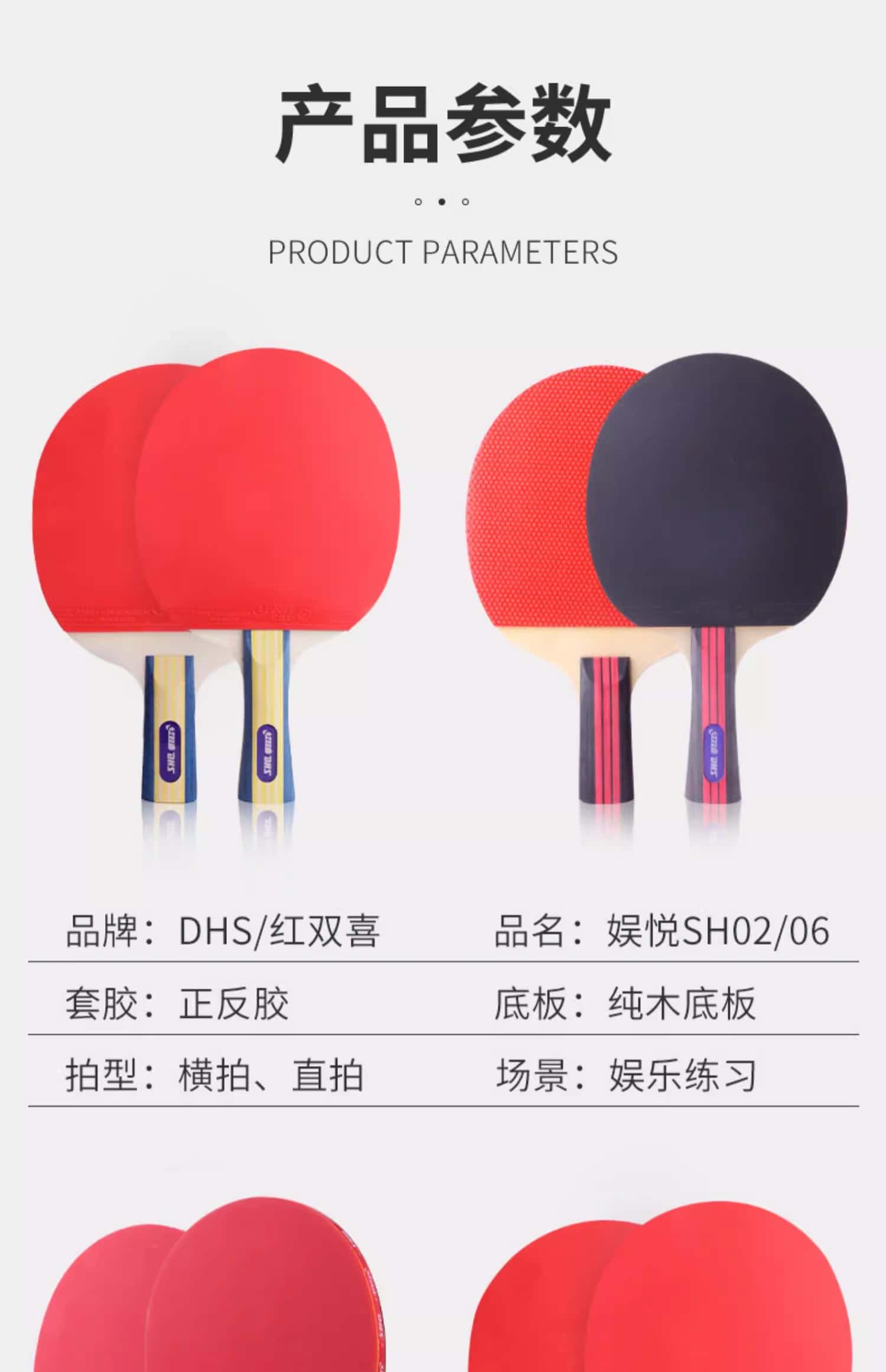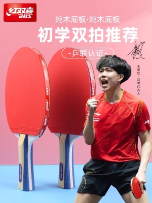 红双喜乒乓球拍双拍小学生儿童初学者兵乓球拍单拍横直正品旗舰店