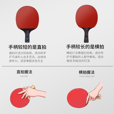 乒乓球拍七星八星反胶快攻7星8星碳素短柄直拍横拍长柄兵乓成品拍