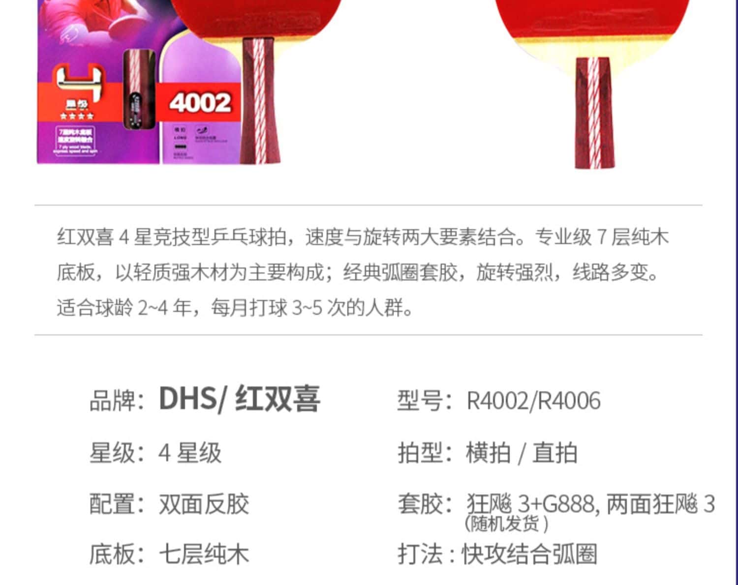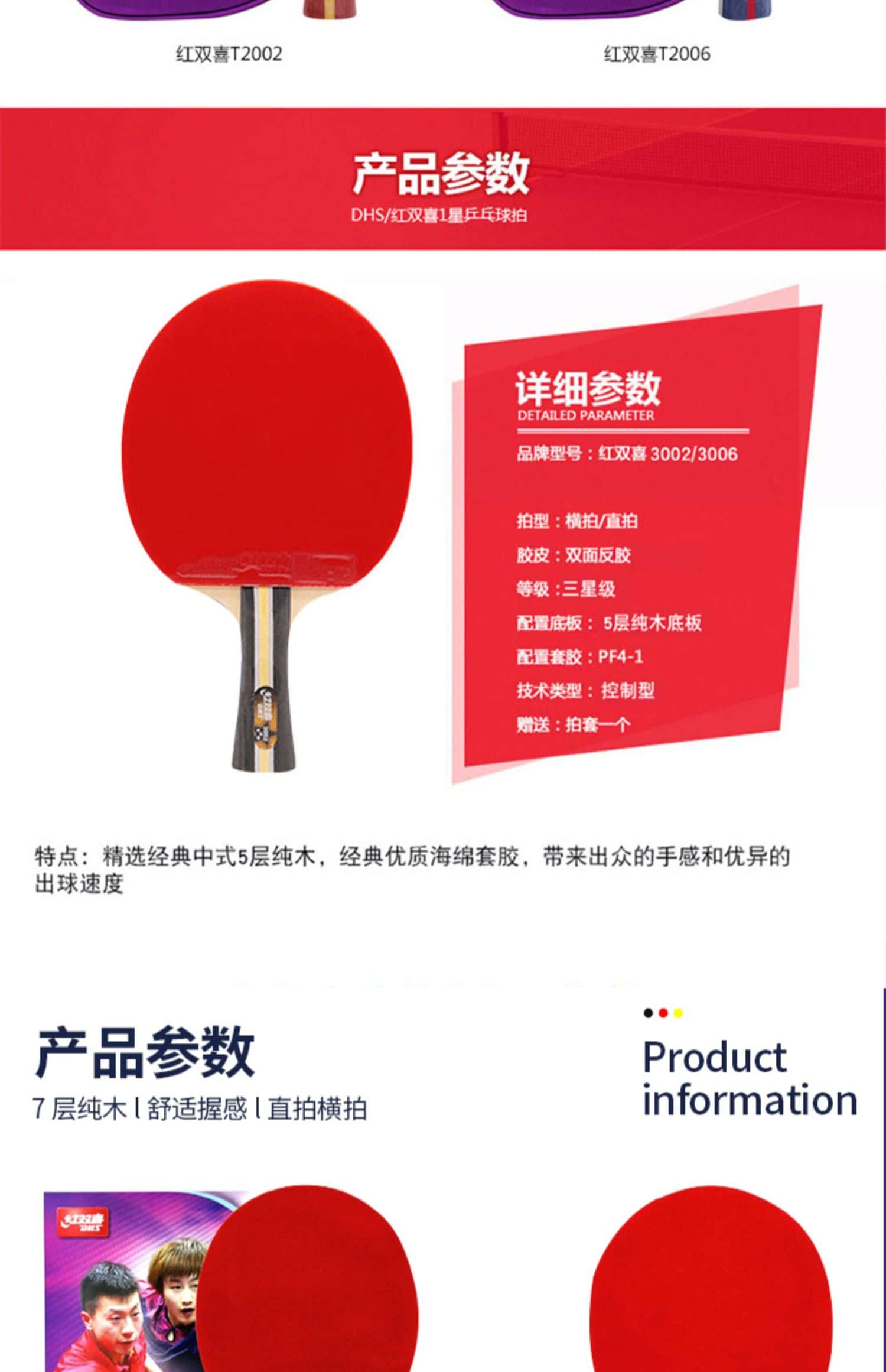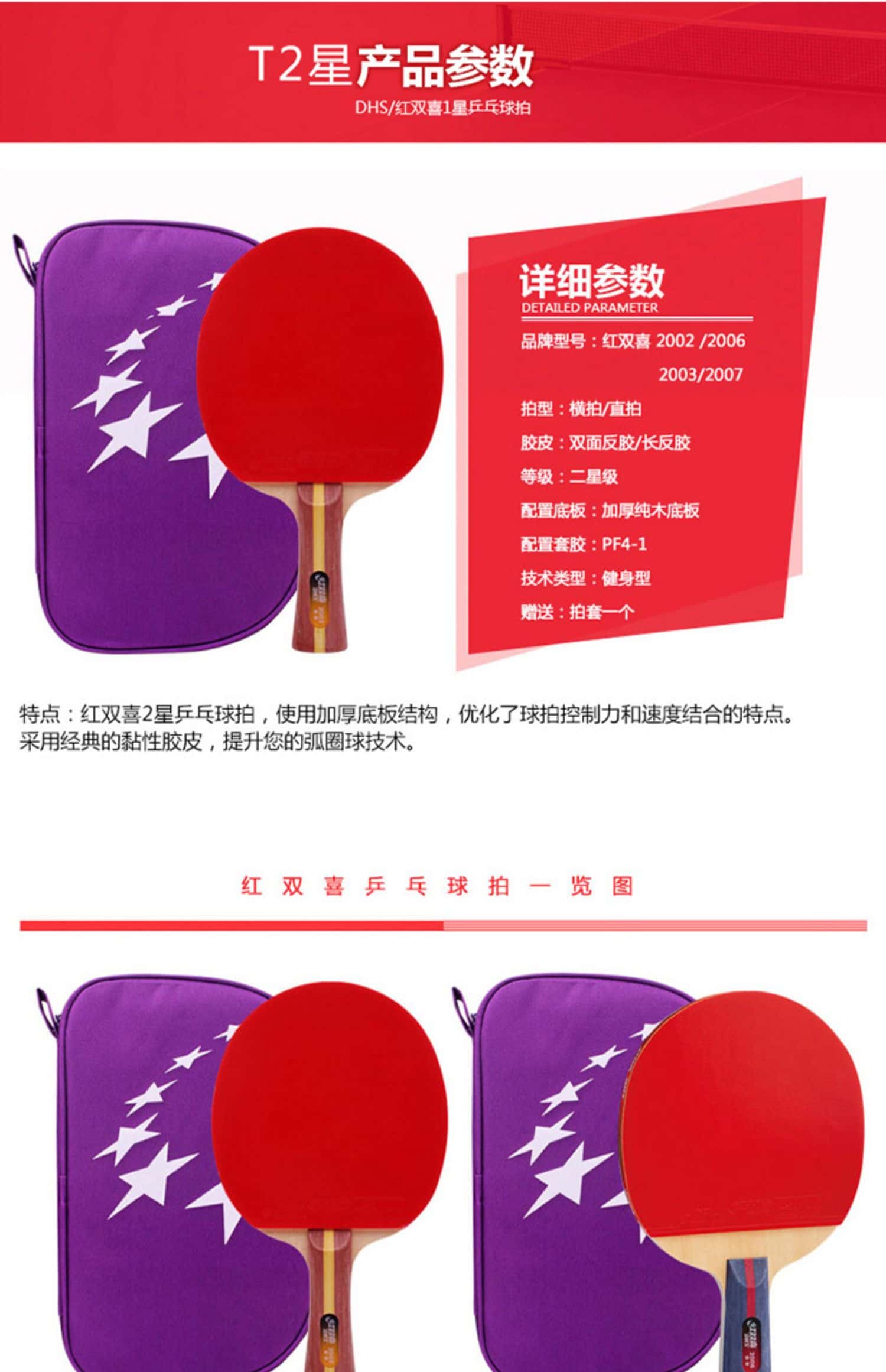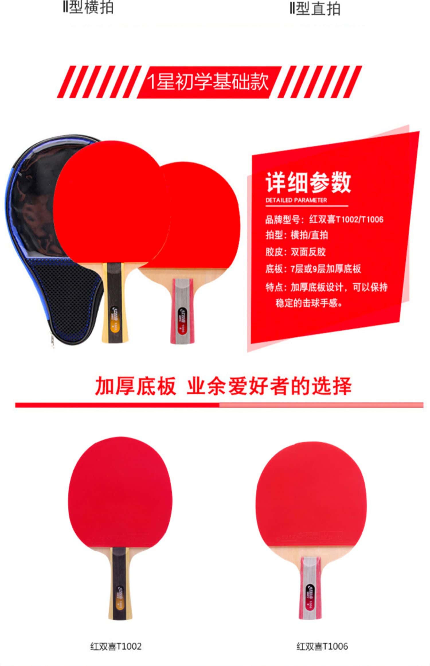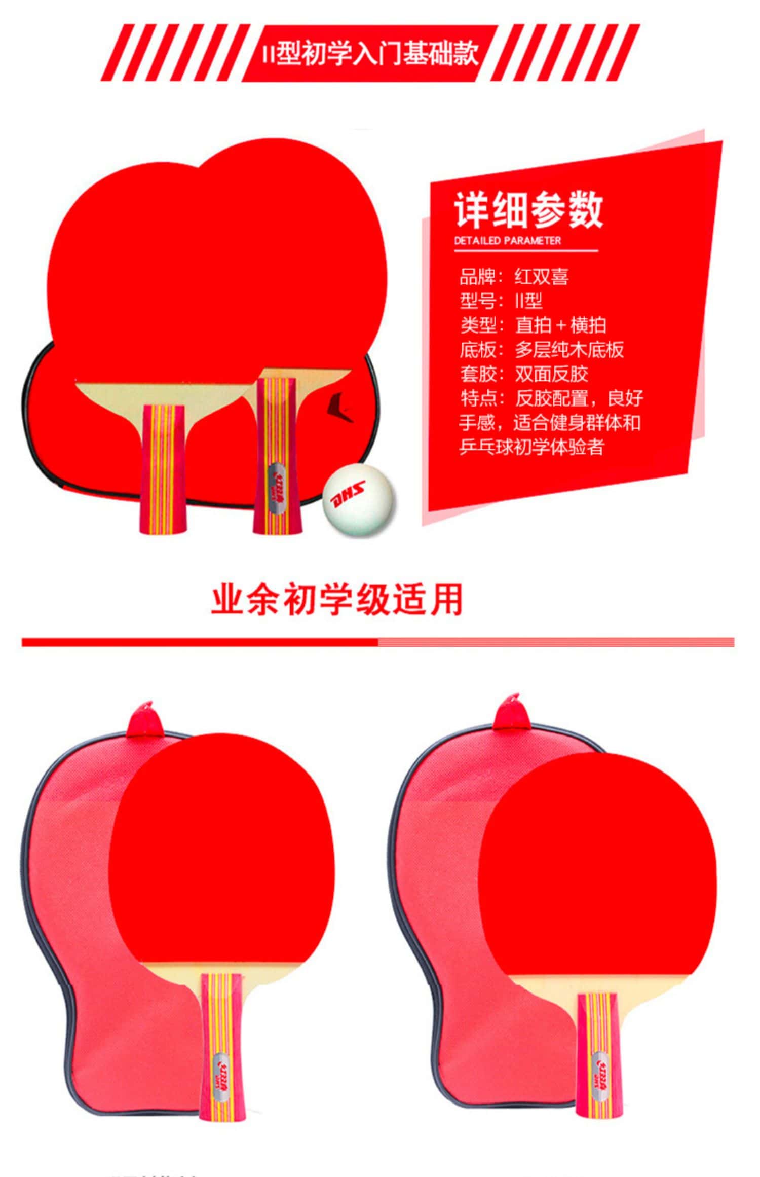 正品红双喜官方旗舰店乒乓球拍双拍儿童小学生初学专来兵乓球单拍