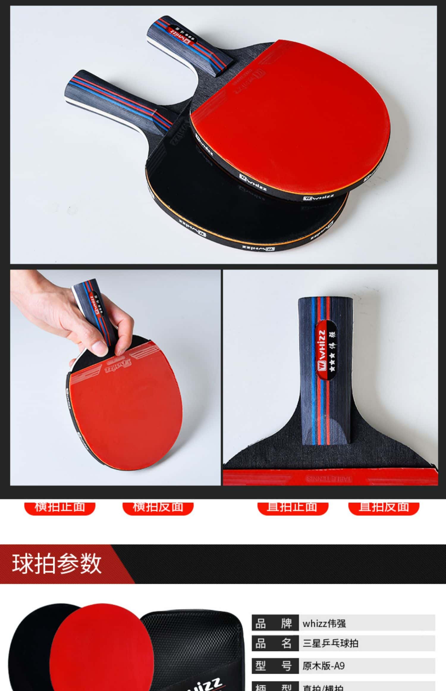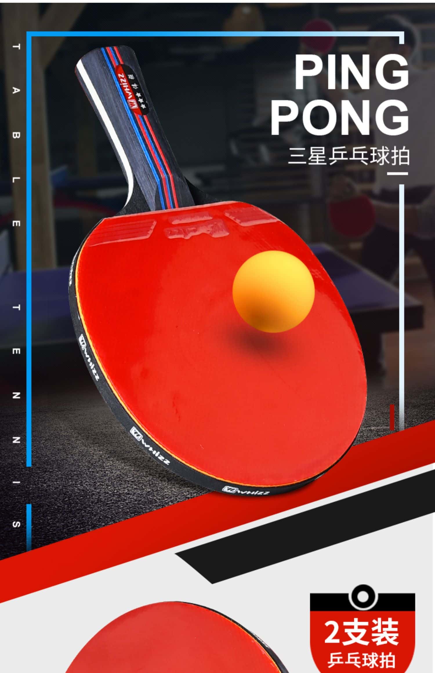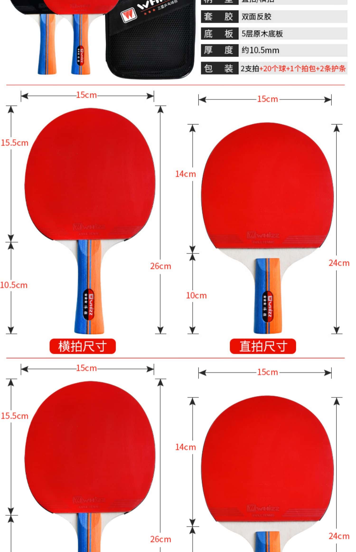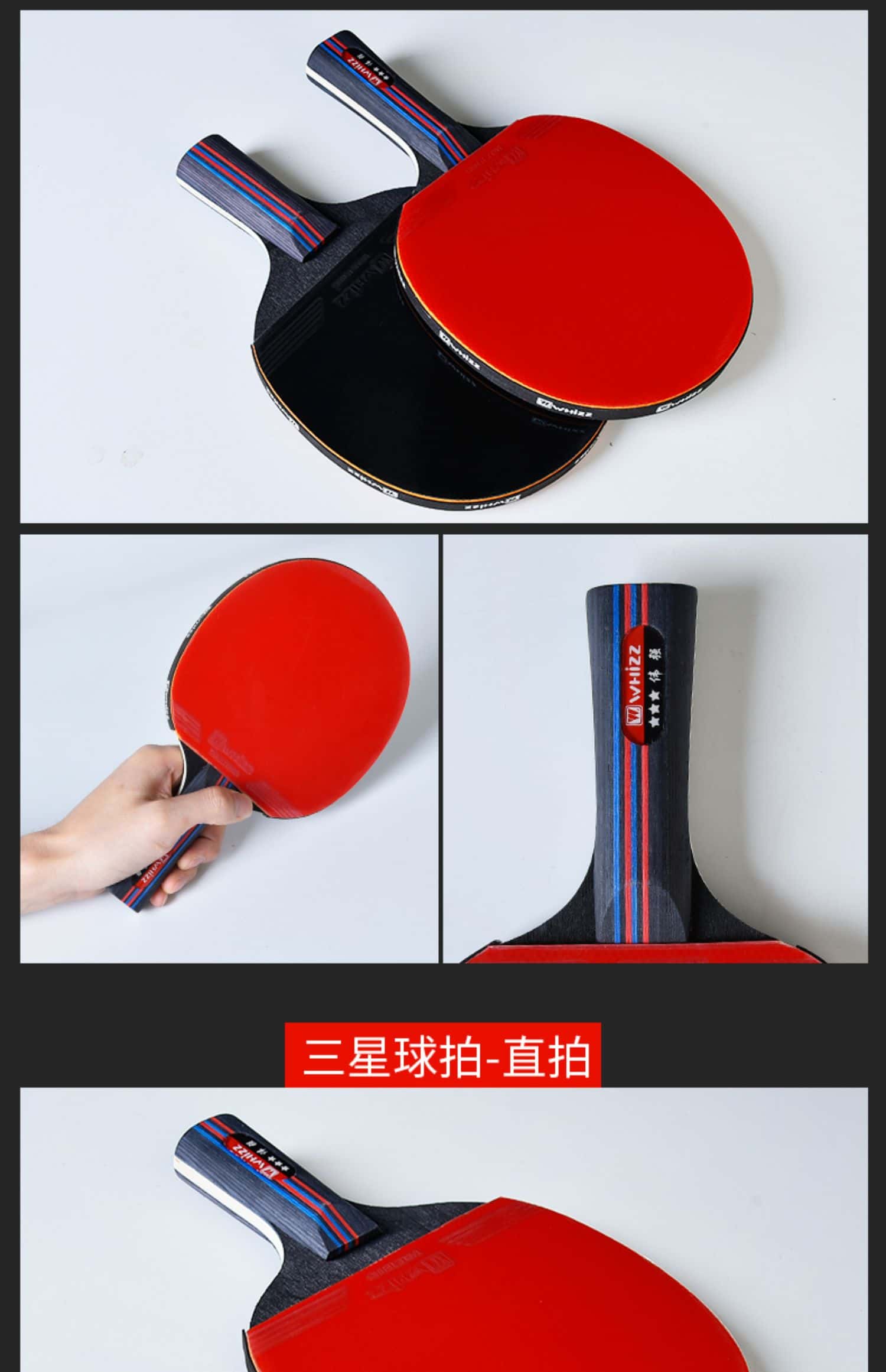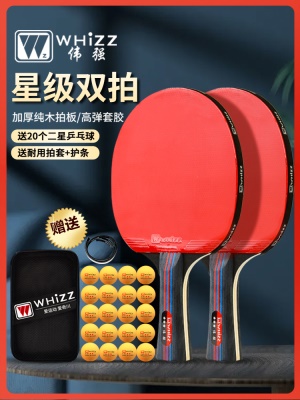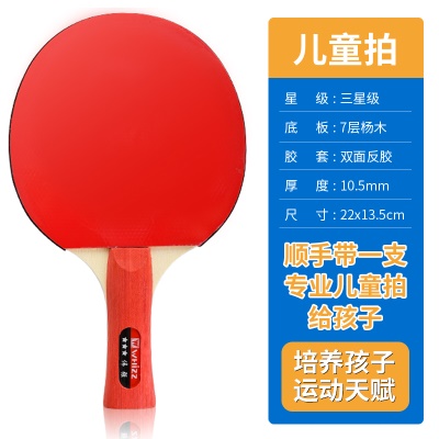 乒乓球拍三星比赛训练兵乓球成品直拍横拍学生2只双人混打四支装