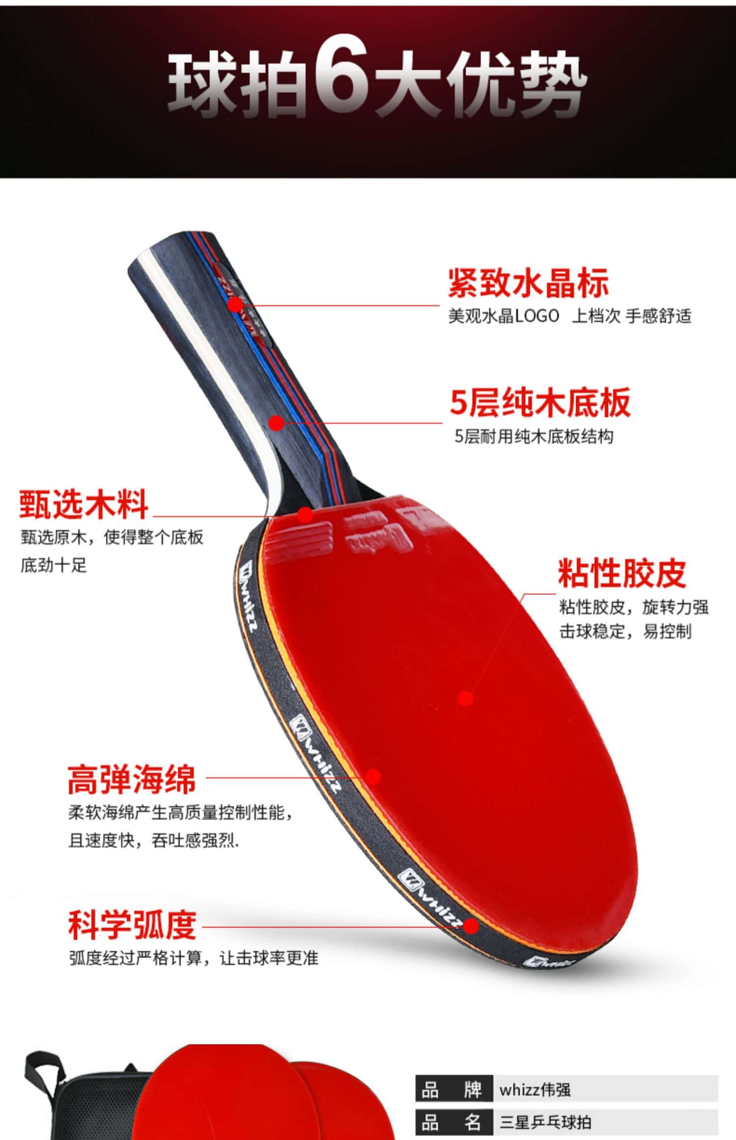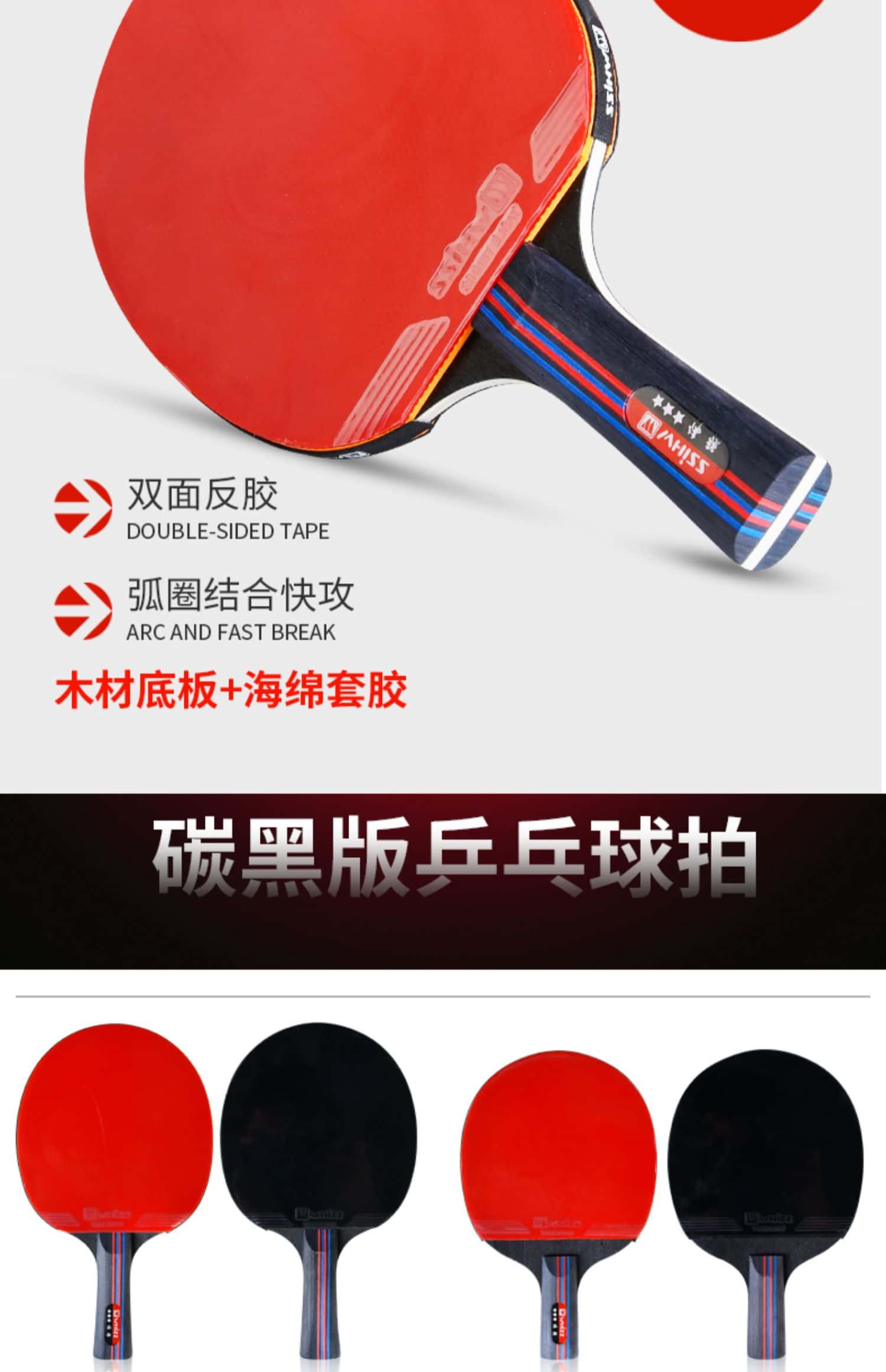 乒乓球拍七星八星反胶快攻7星8星碳素短柄直拍横拍长柄兵乓成品拍