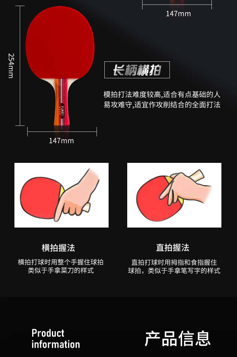 乒乓球拍初学者长柄学生高弹力儿童球拍专业级横拍直拍训练专用拍