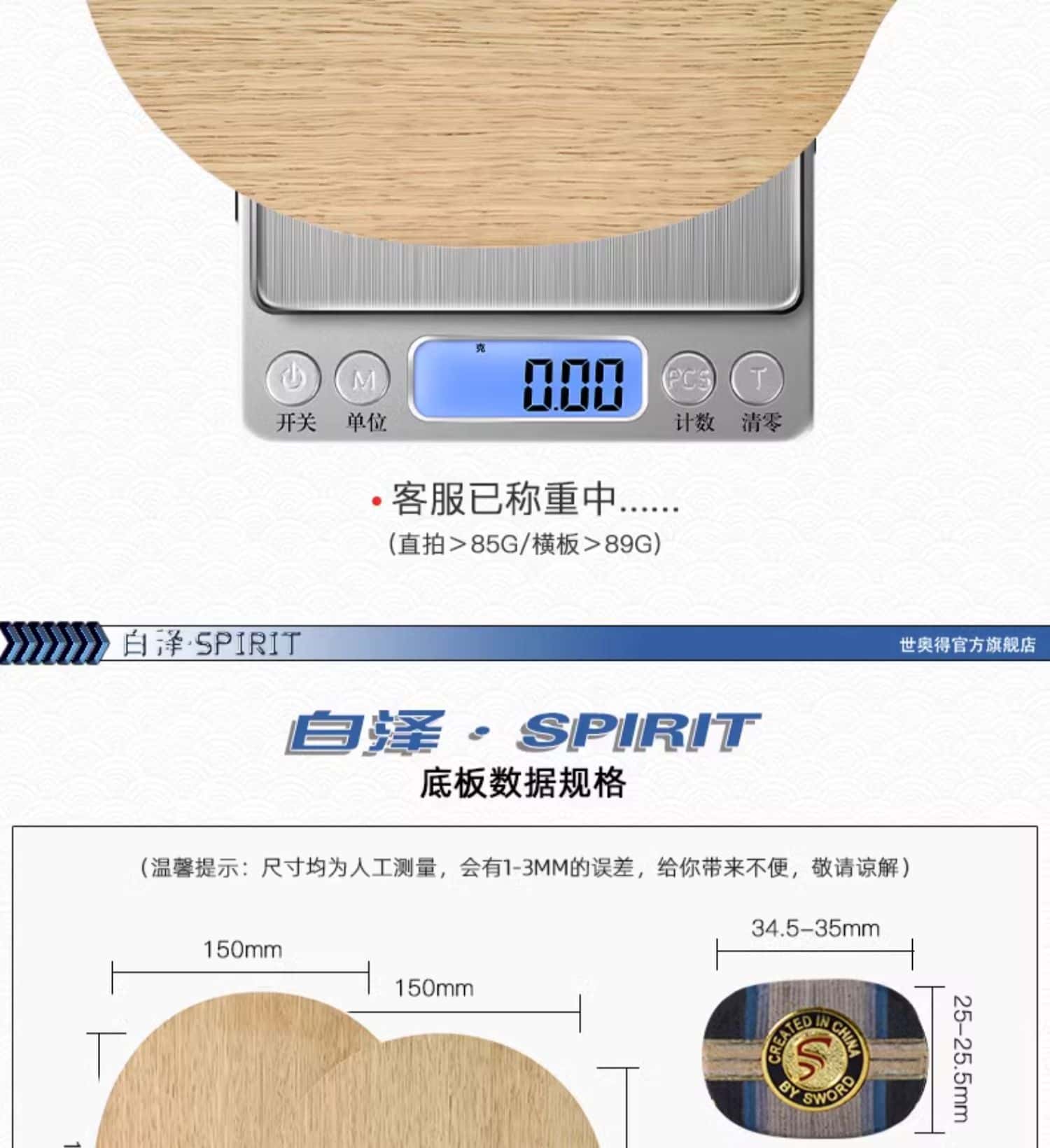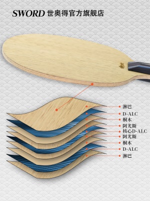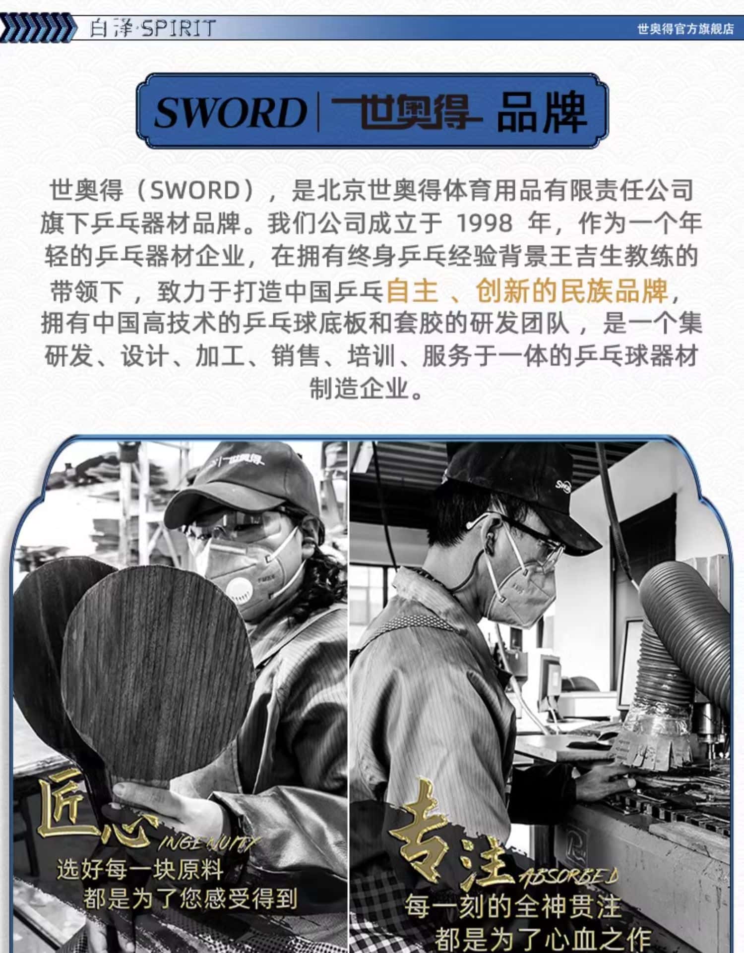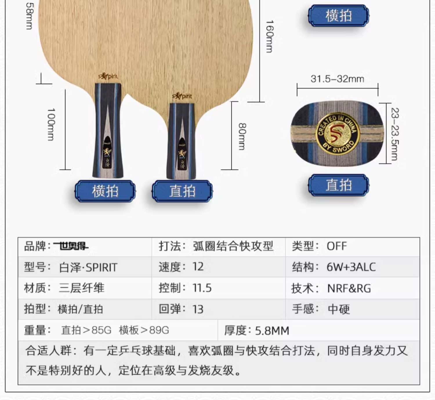 SWORD世奥得白泽球拍高端纤维底板弧圈结合快攻型横直拍乒乓球拍