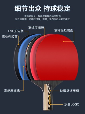 乒乓球拍七星八星反胶快攻7星8星碳素短柄直拍横拍长柄兵乓成品拍