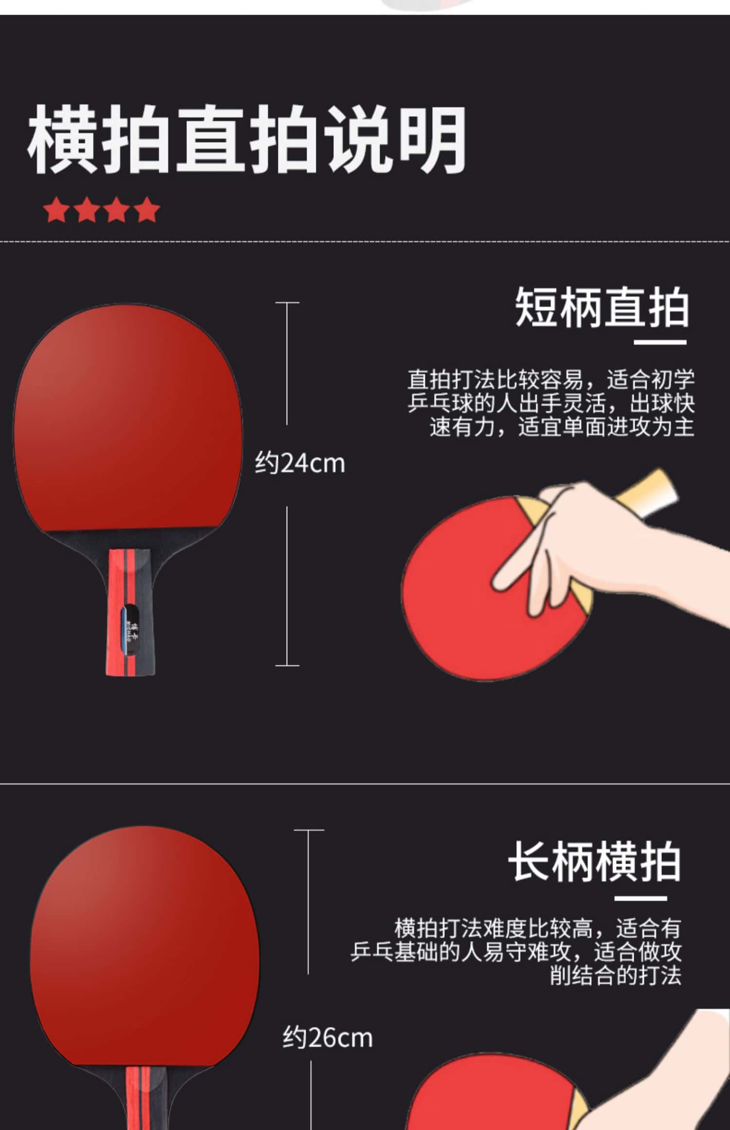 乒乓球拍七星八星反胶快攻7星8星碳素短柄直拍横拍长柄兵乓成品拍