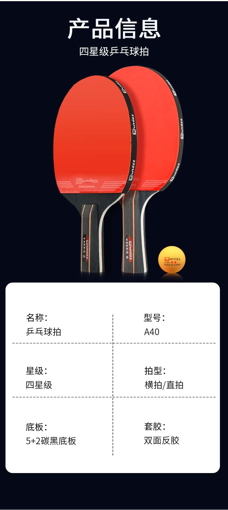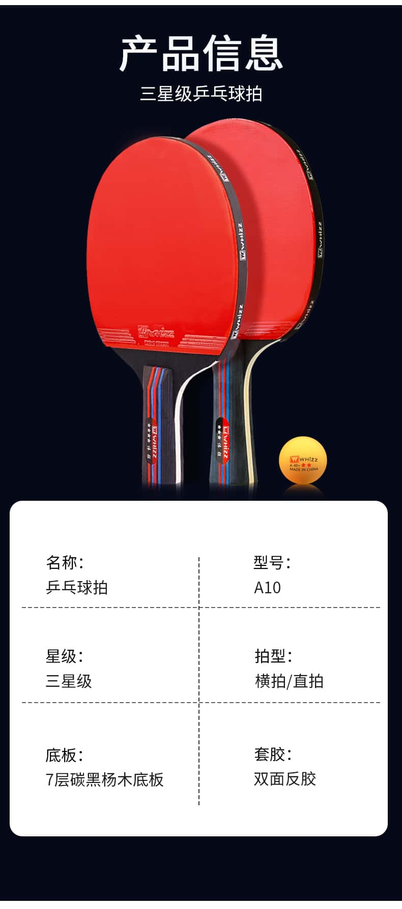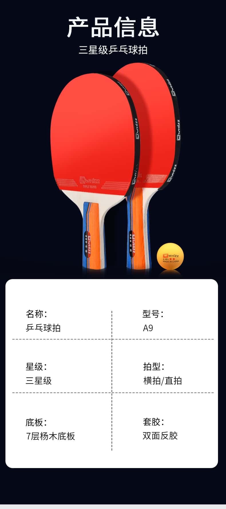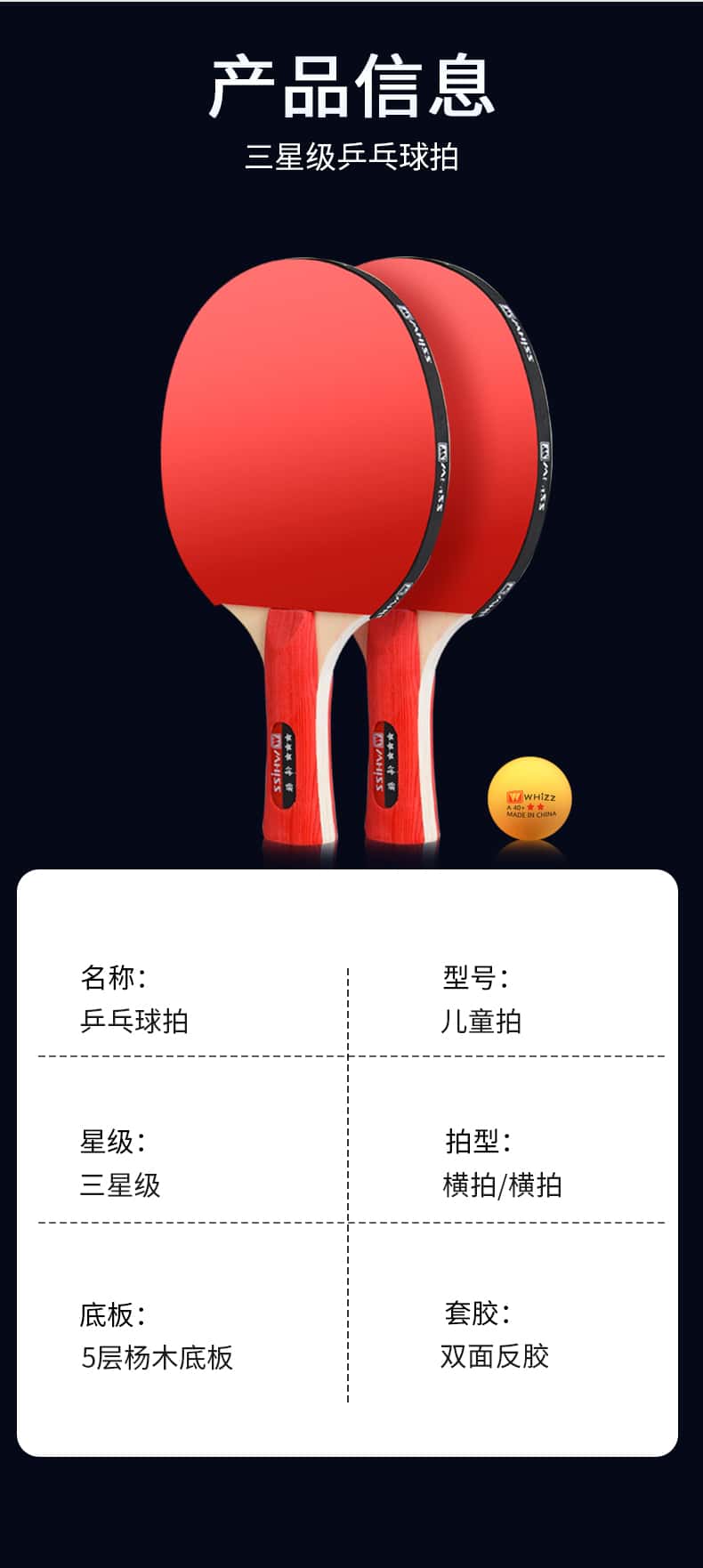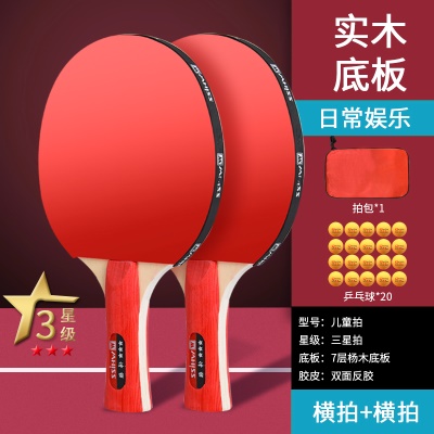 耐用乒乓球拍三星四星初学者兵乓球直拍横拍儿童小学生专业级双拍