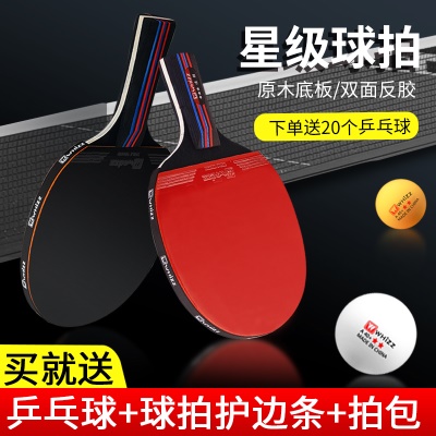 伟强品牌正品乒乓球拍三星比赛训练兵乓球成品直拍横拍学生2只装