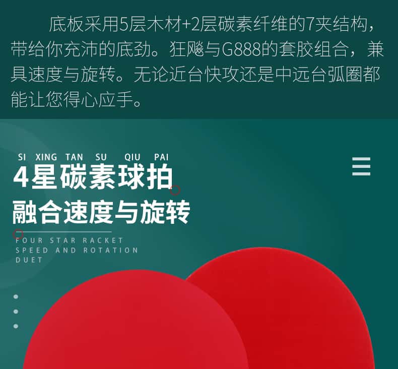 乒乓球拍七星八星反胶快攻7星8星碳素短柄直拍横拍长柄兵乓成品拍