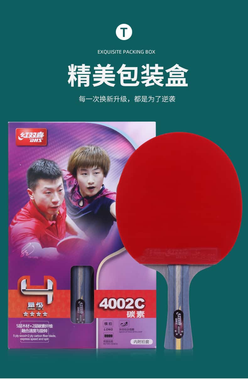 红双喜乒乓球拍单拍四星专业级狂飚4星碳素儿童小学生兵乓球拍