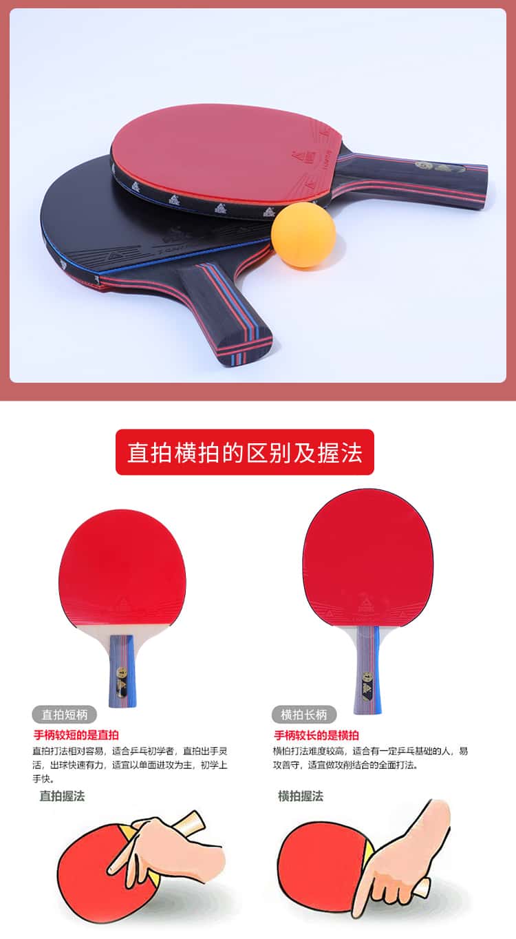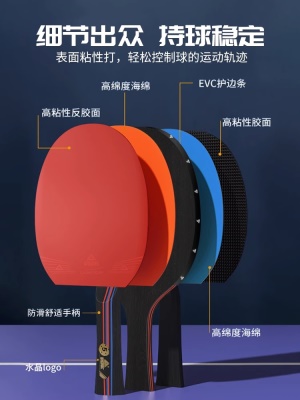 乒乓球拍七星八星反胶快攻7星8星碳素短柄直拍横拍长柄兵乓成品拍