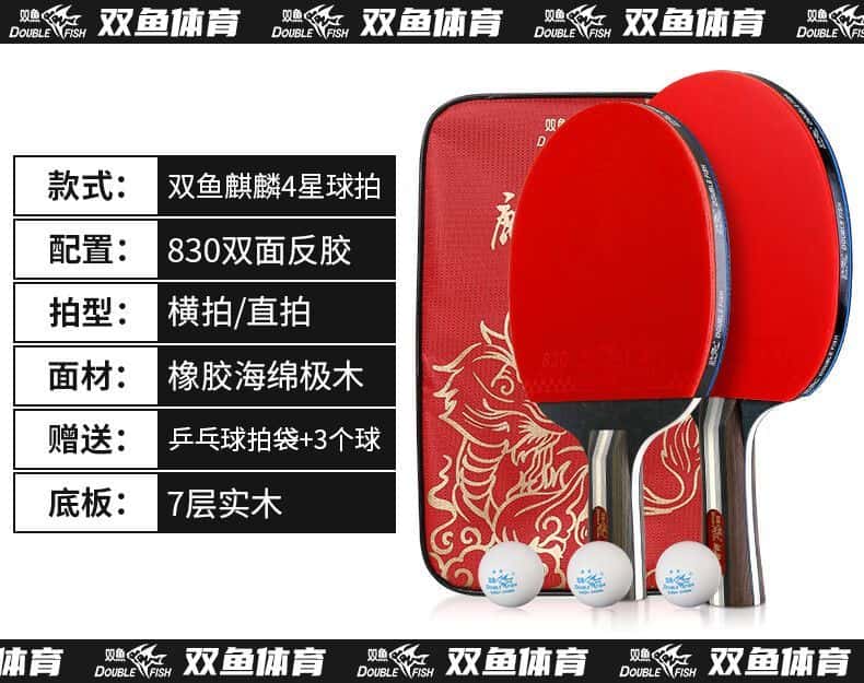 双鱼四星乒乓球拍双拍套装双面反胶专业星级单拍高粘性比赛训练拍