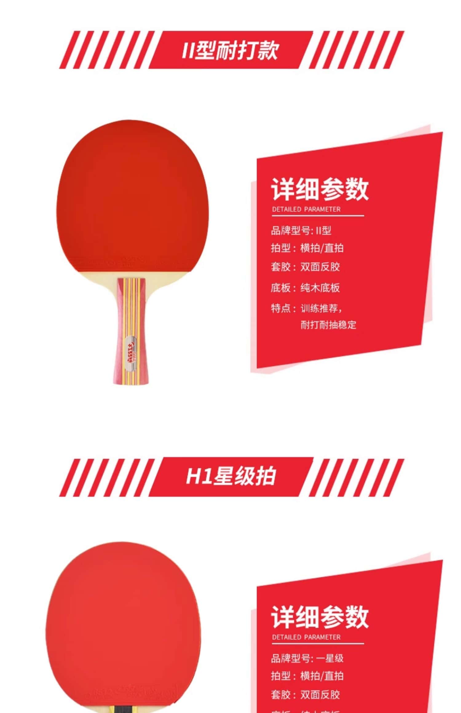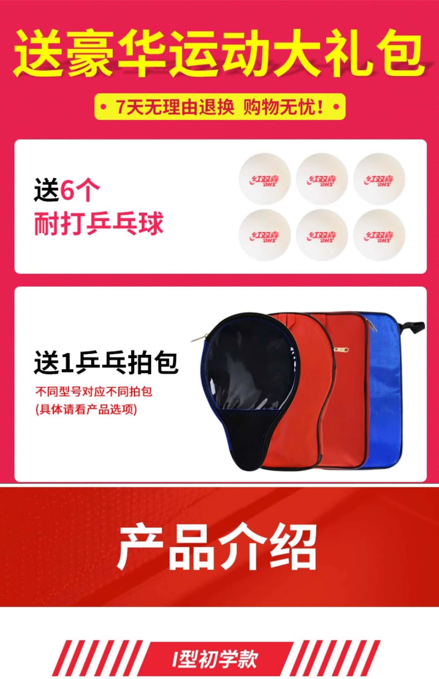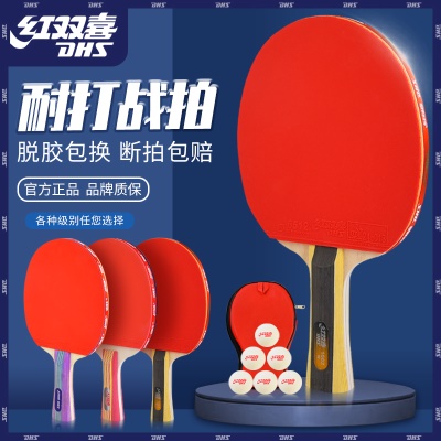 红双喜正品乒乓球拍耐打儿童1支单拍初学者学生横拍直拍兵乓球拍