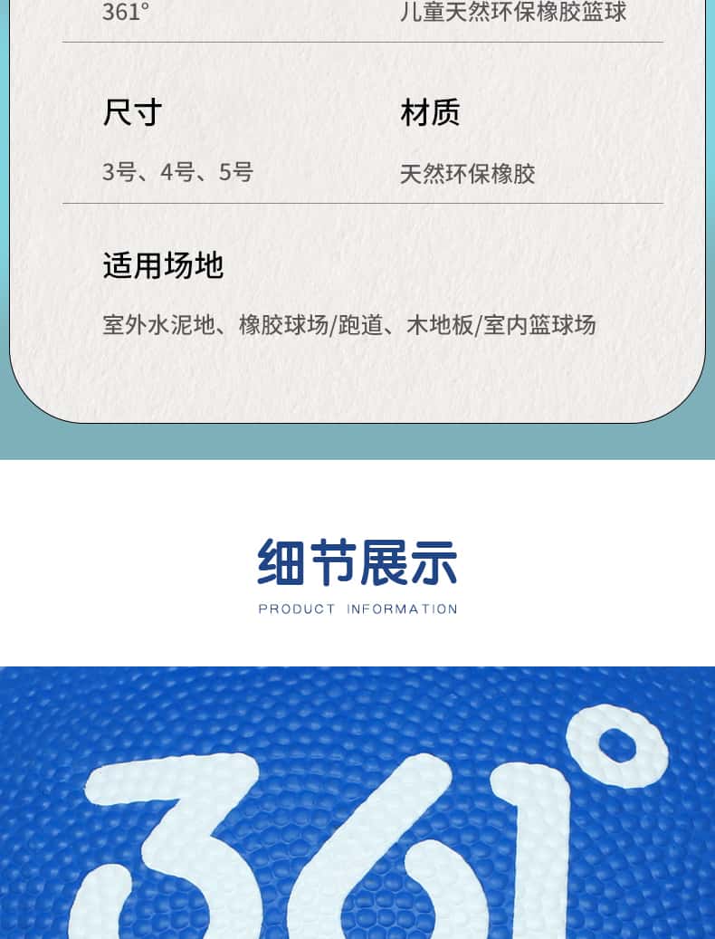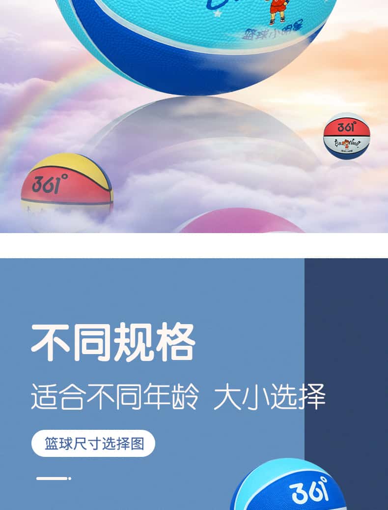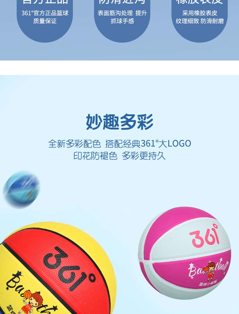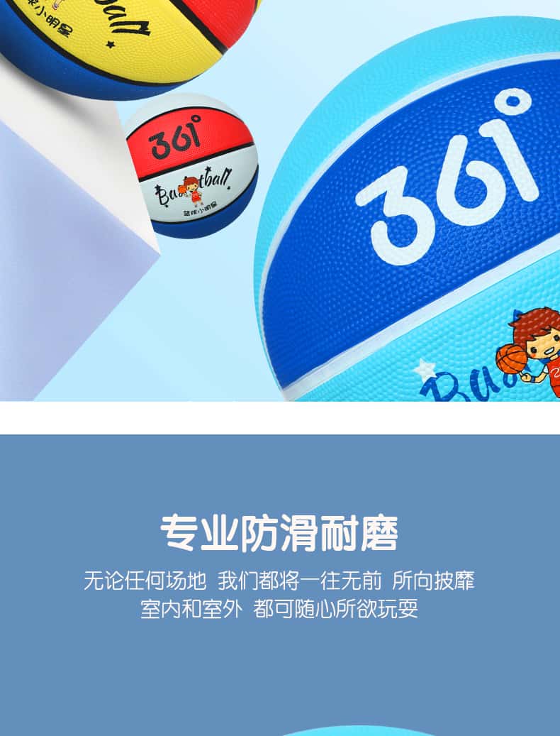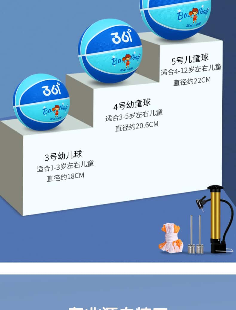 361度篮球儿童5号训练小孩专用3-4号幼儿园宝宝小学生耐磨蓝皮球