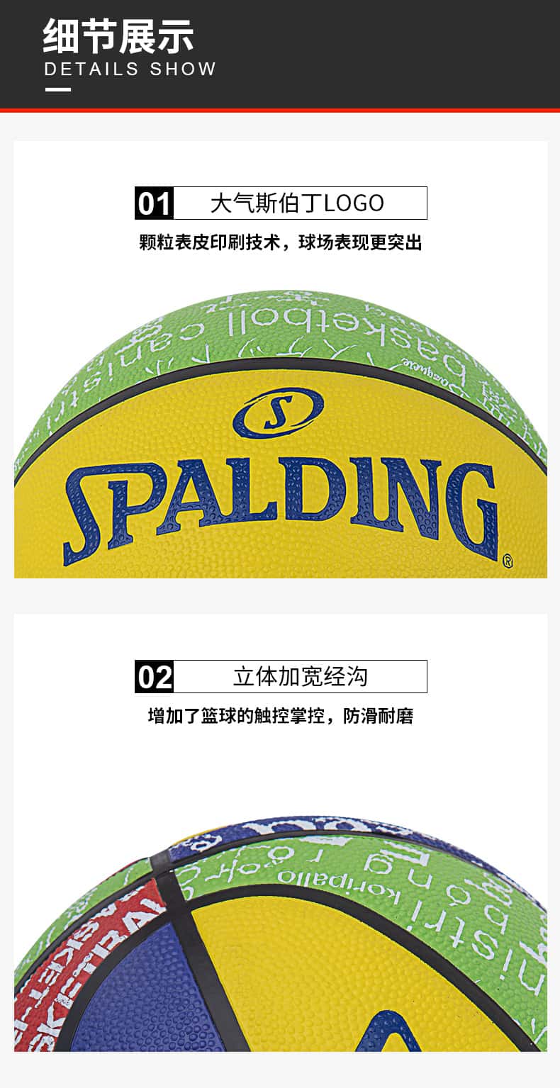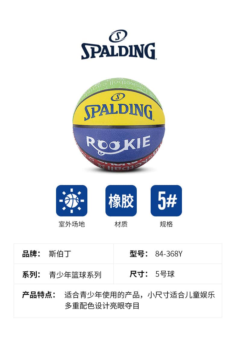 斯伯丁篮球青少年儿童彩色5号室外橡胶篮球礼物学生训练专用篮球