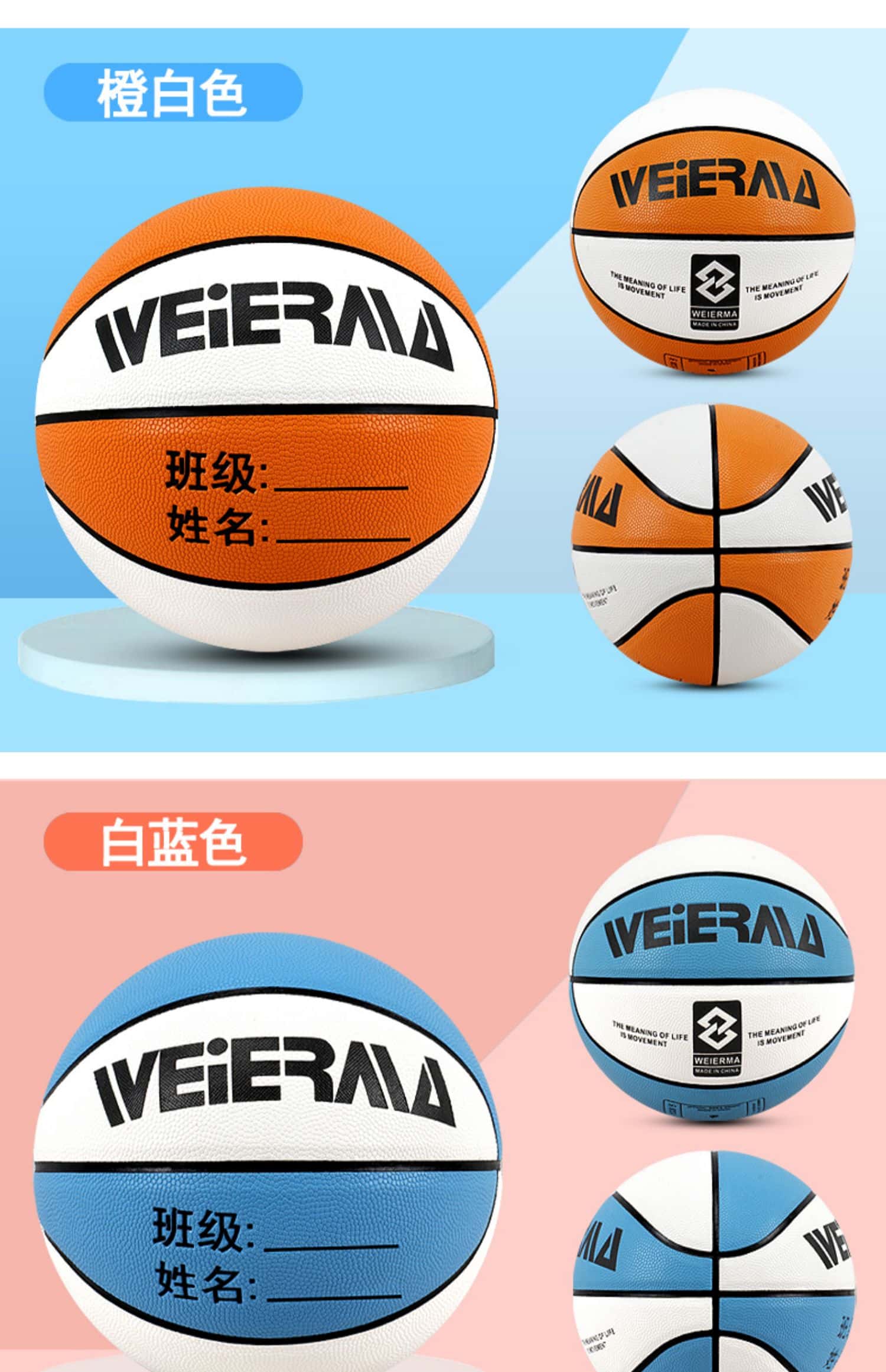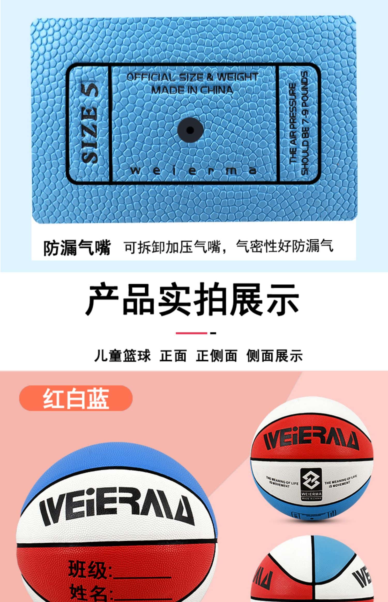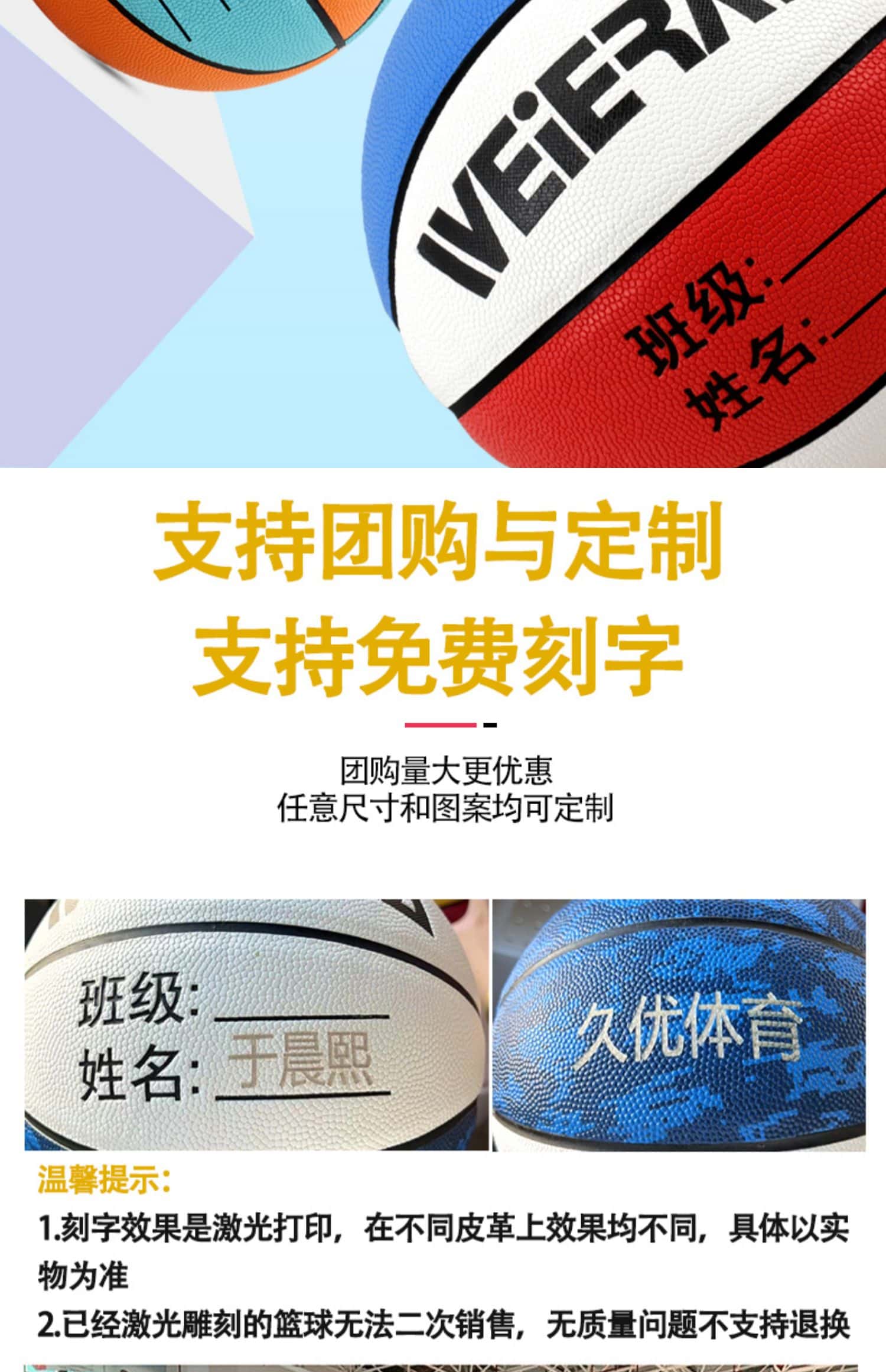 篮球儿童定制LOGO4567号幼儿园中小学生专用训练操成人室内外蓝做