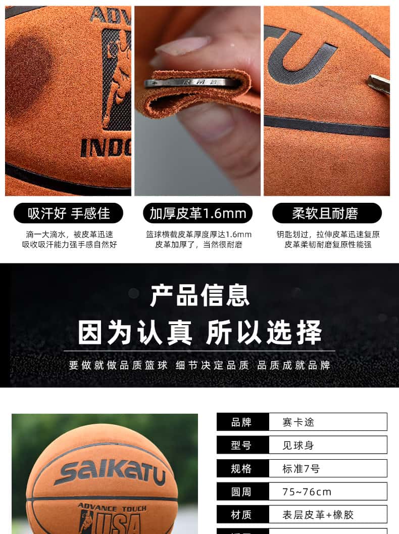 赛卡途正品室外耐磨牛皮真皮手感中小学生7号成人比赛篮球5号儿童