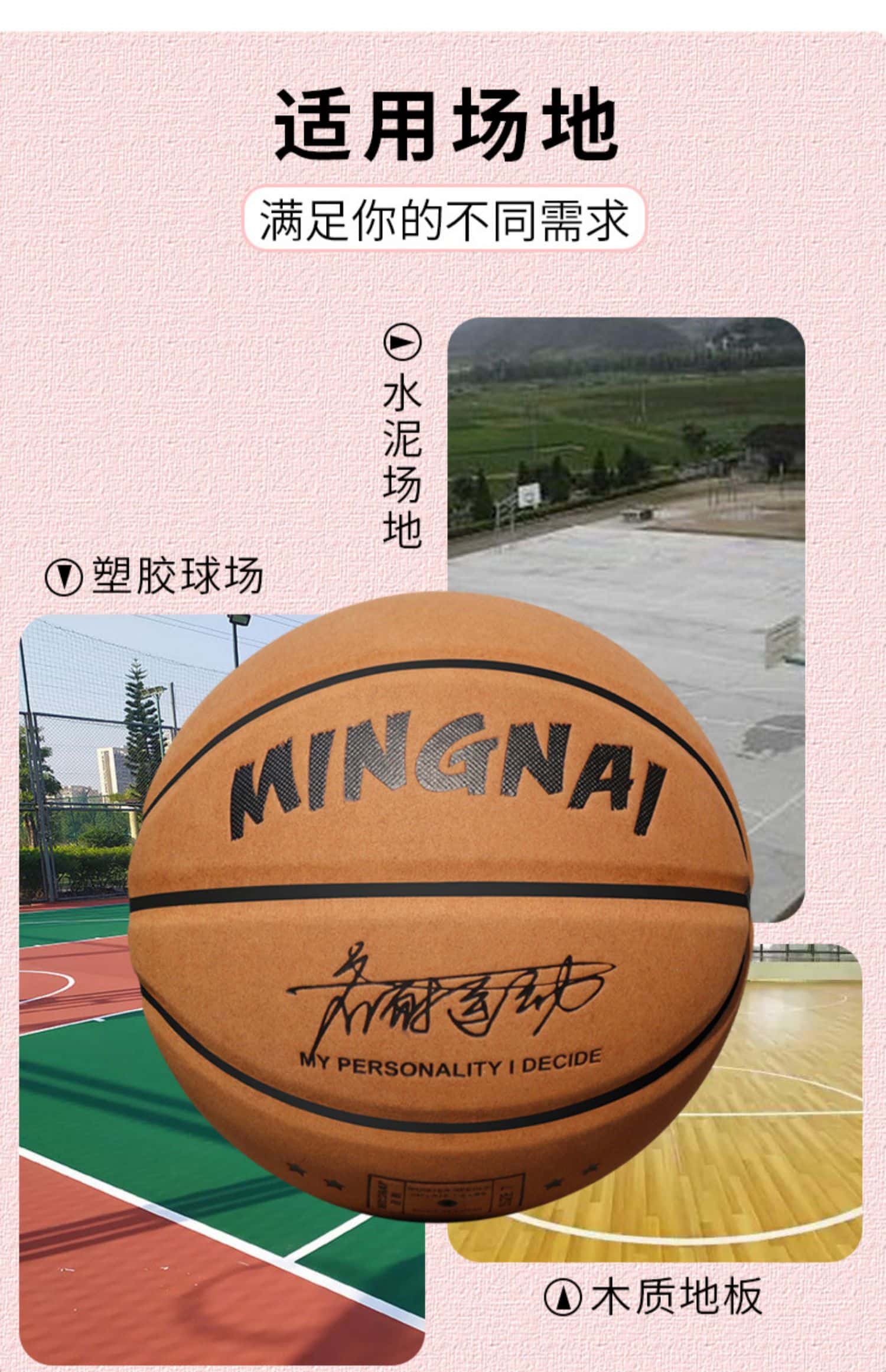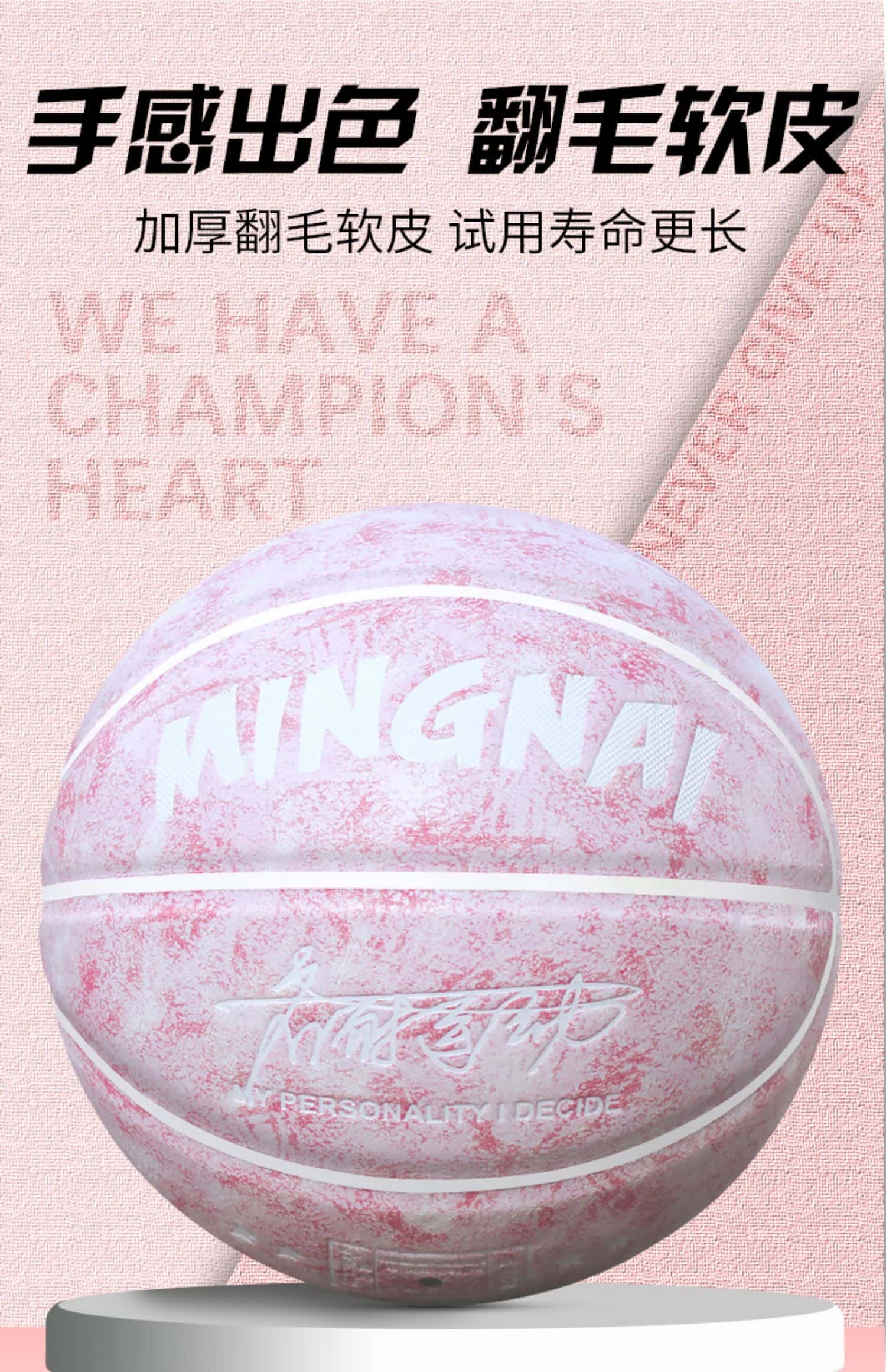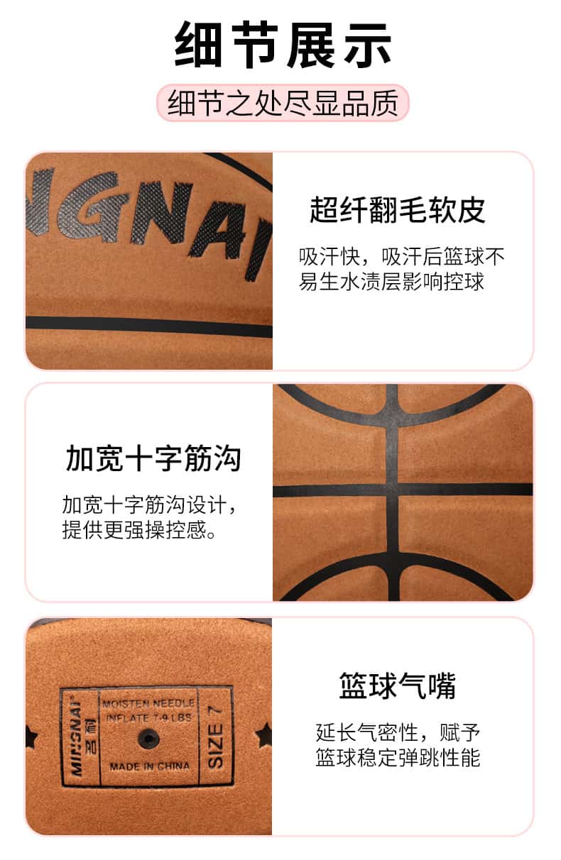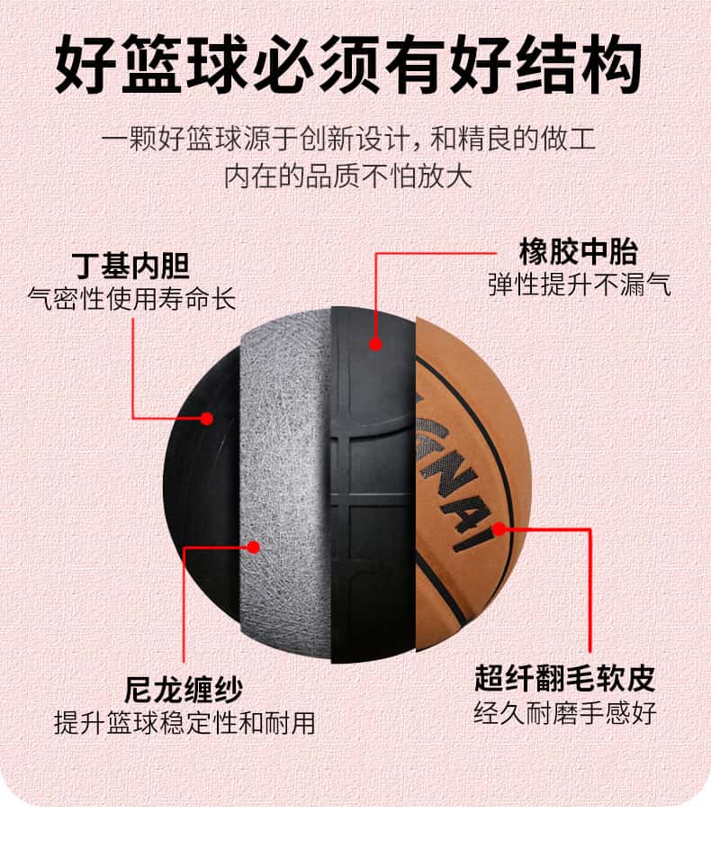 篮球手感之王标准7号专业室外耐磨成人男粉色女子6号女生专用真皮