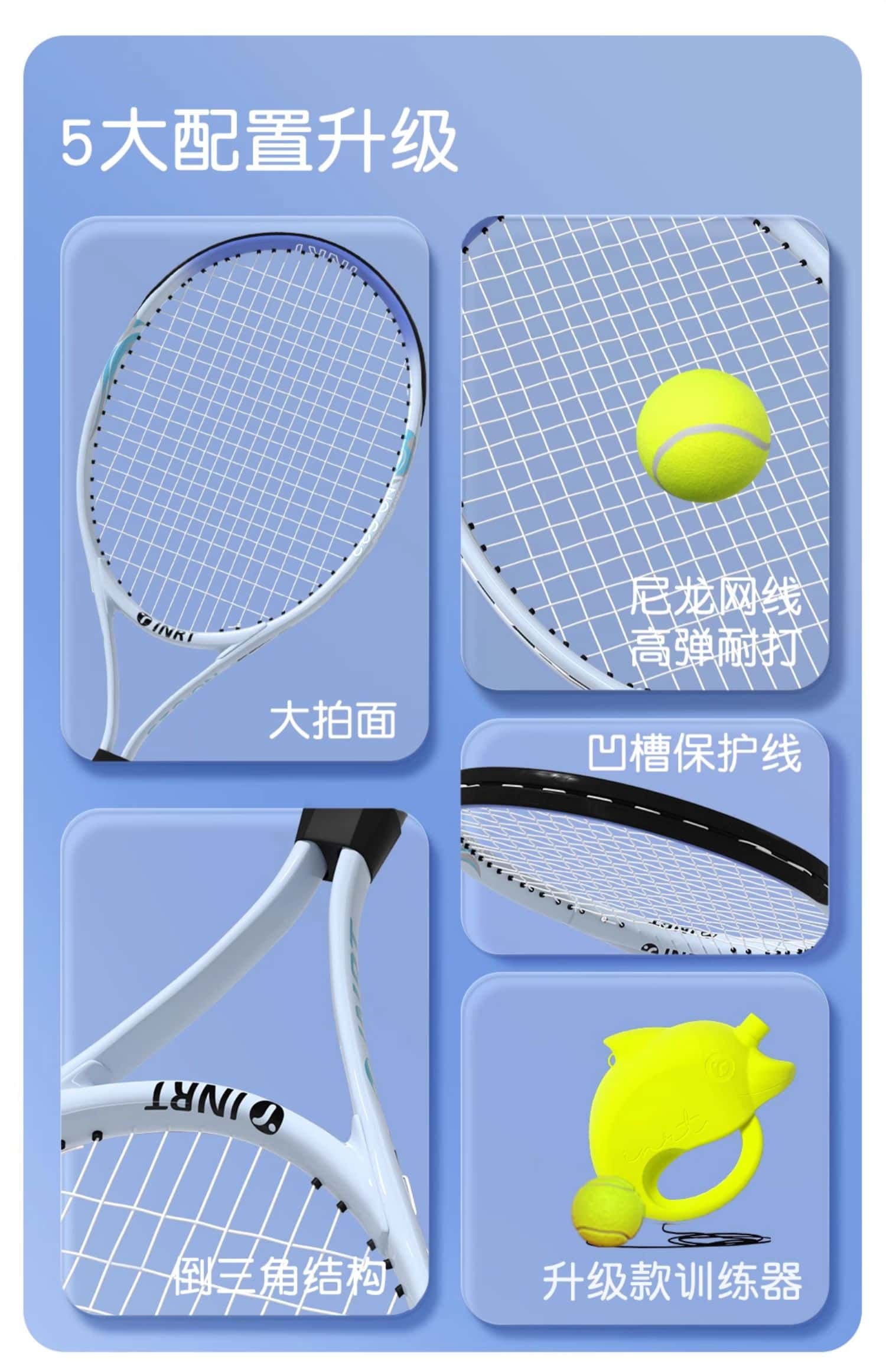 冲驰网球拍初学者大学生单人回弹训练器全碳素一体女新手双人套装