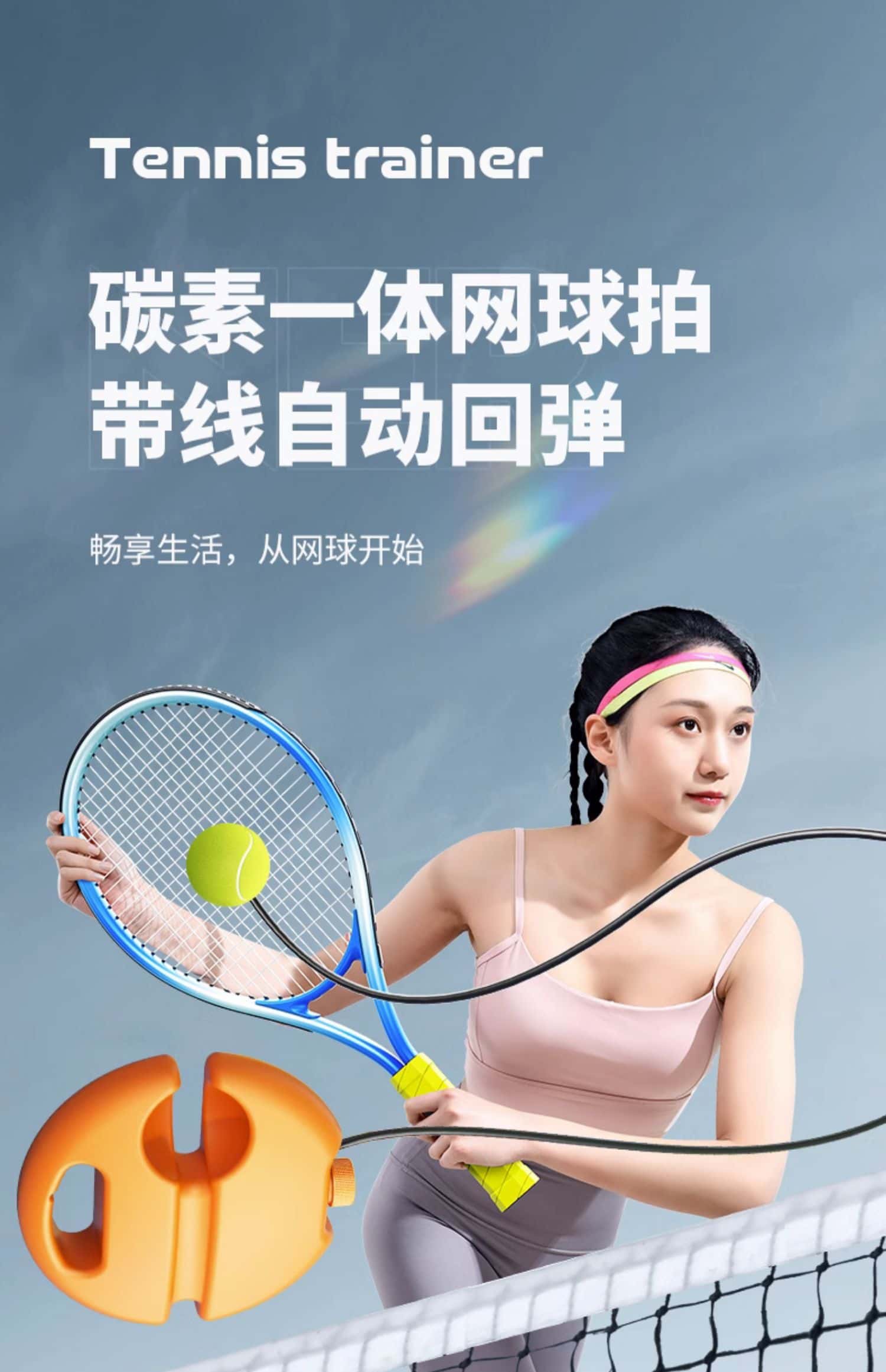 网球回弹训练器单人打带线成人固定高弹力球拍一个人自打神器双人