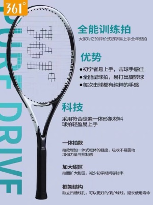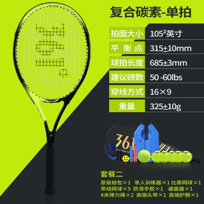 361碳素复合网球拍减震耐用牢固稳定初学者双人对打单人训练套装