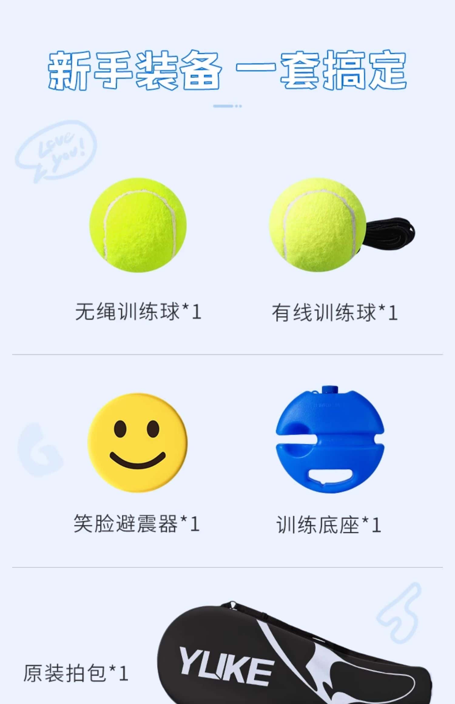 网球回弹训练器单人打带线成人固定高弹力球拍一个人自打神器双人