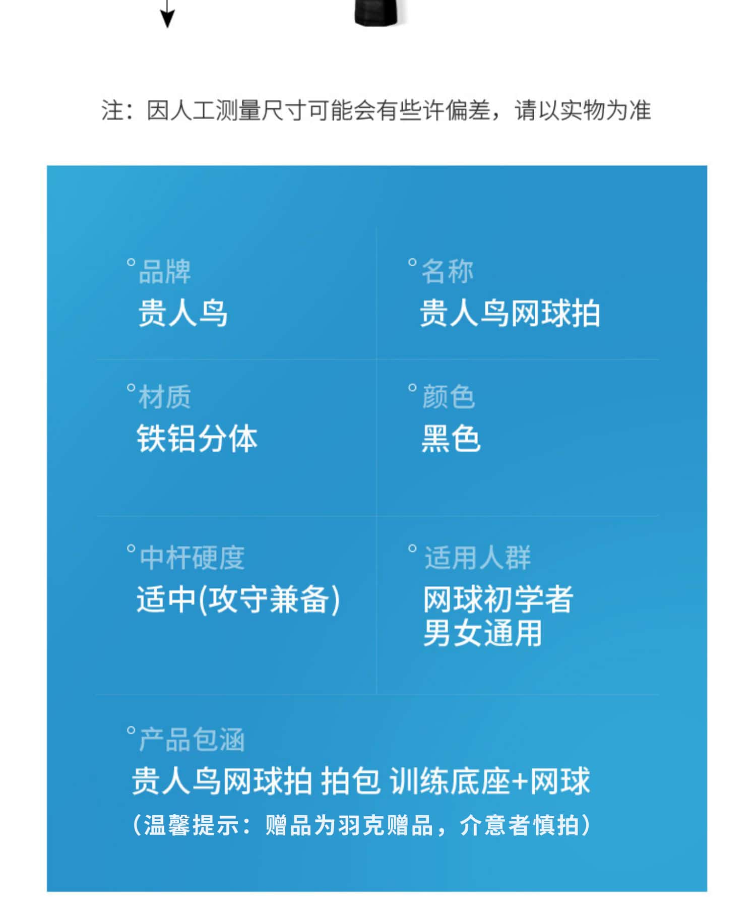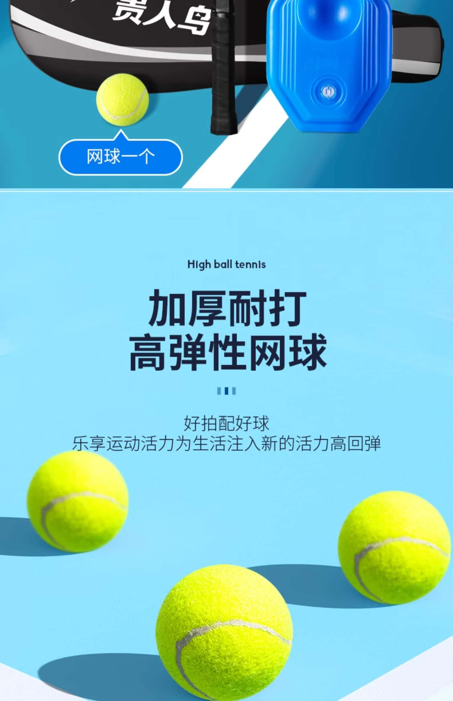 贵人鸟网球拍训练器单人打带线回弹大学生初学者专业网球套装儿童