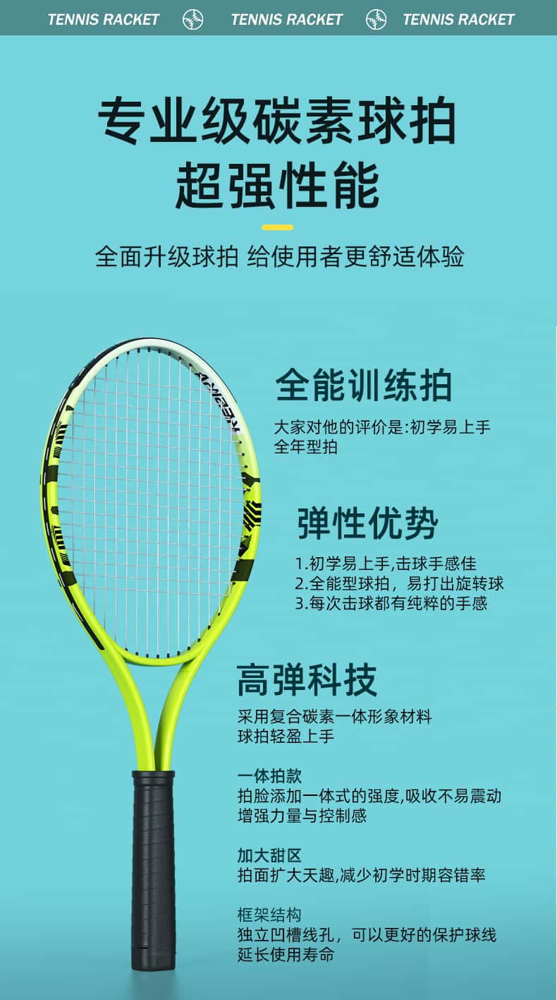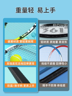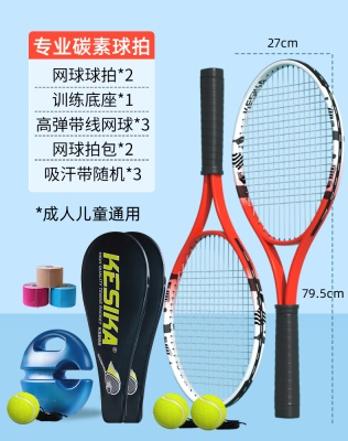 冲驰网球拍初学者大学生单人回弹训练器全碳素一体女新手双人套装