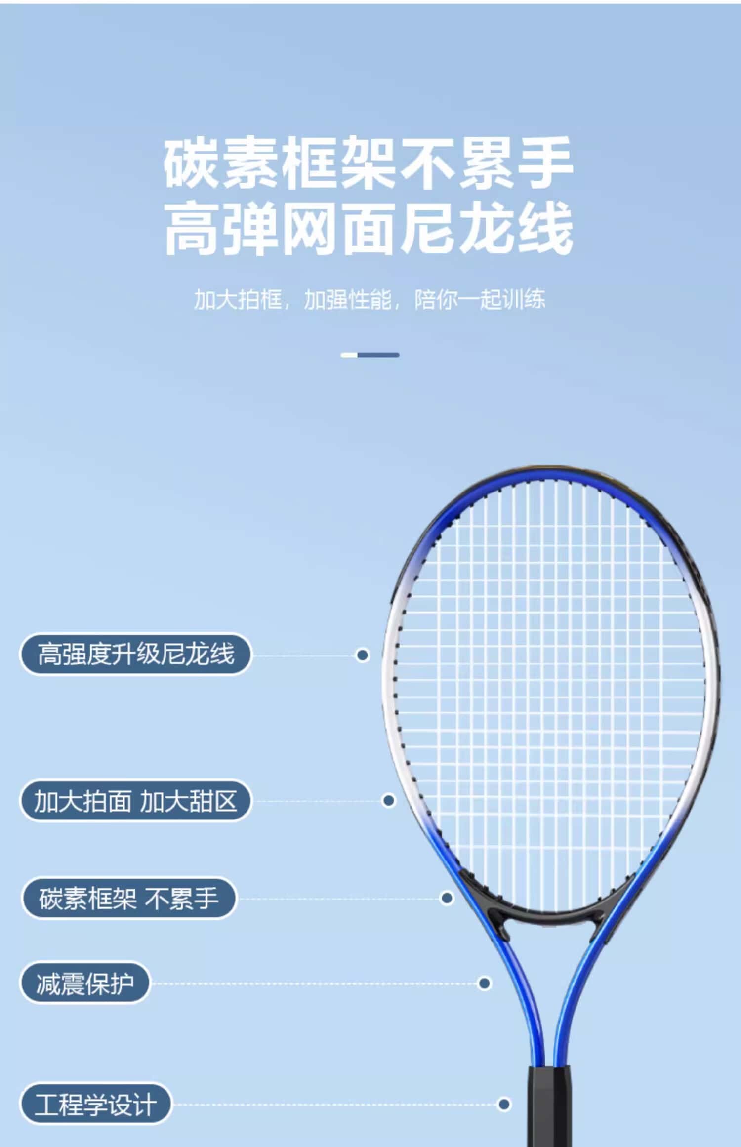 冲驰网球拍初学者大学生单人回弹训练器全碳素一体女新手双人套装
