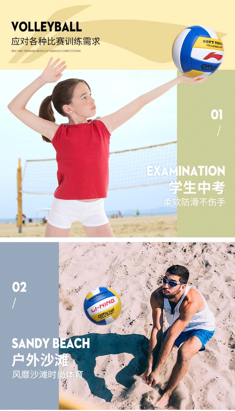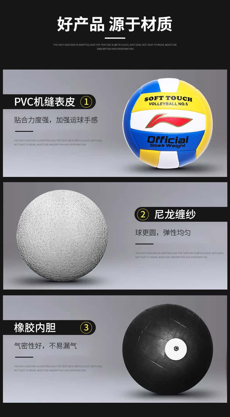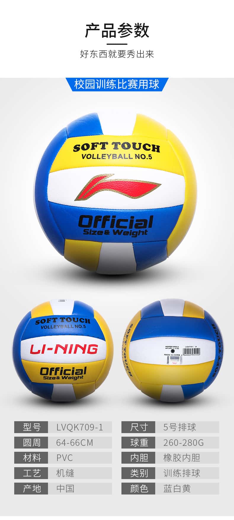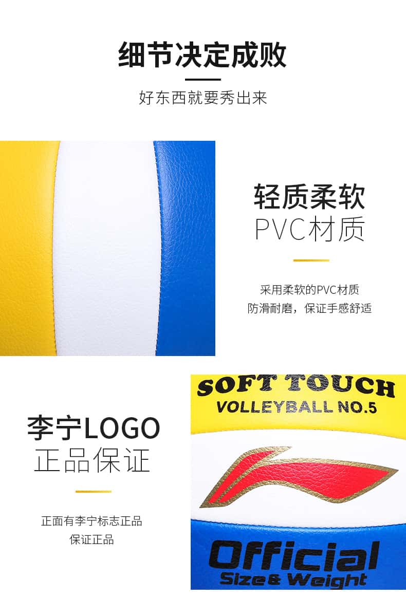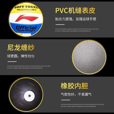 李宁排球5号正品学生训练用排球不伤手软式排球中考lining