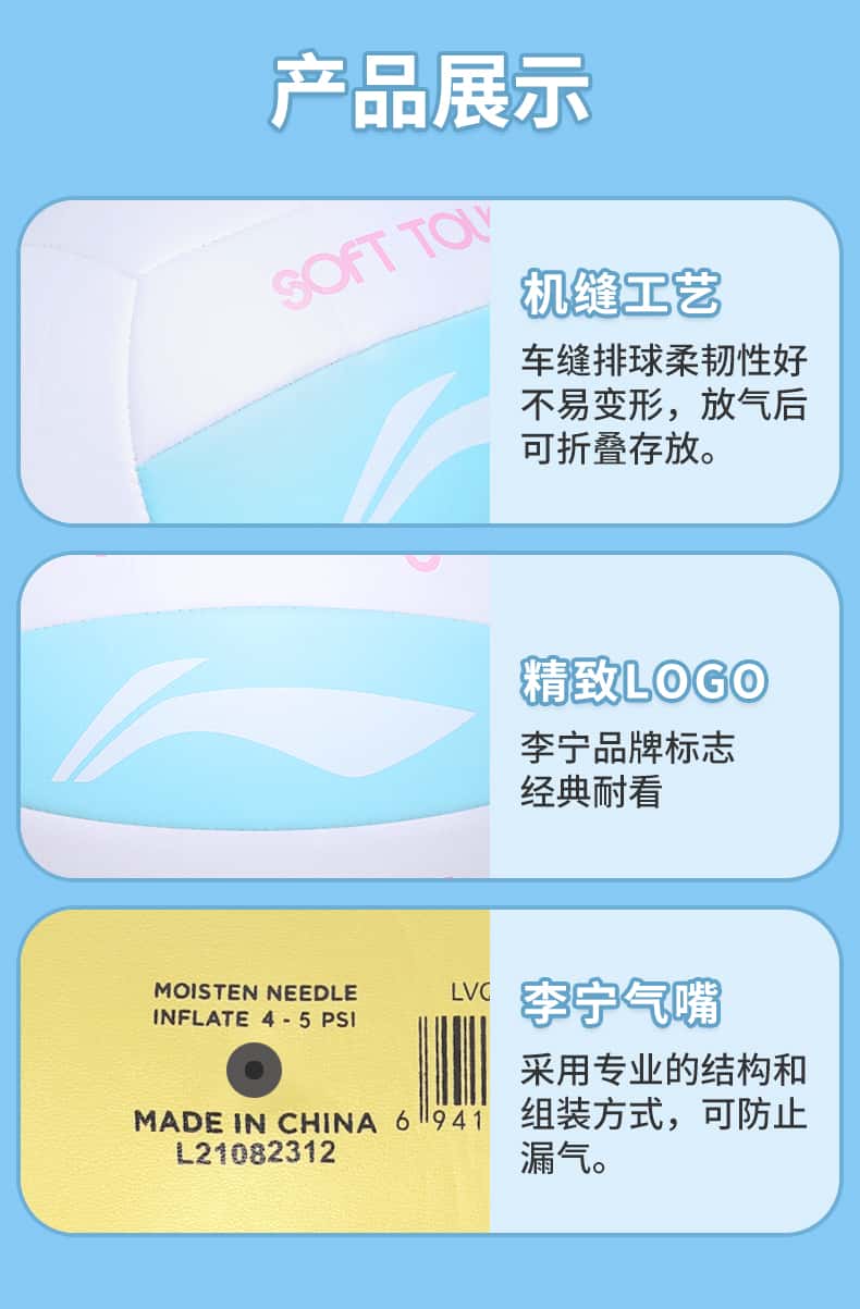 李宁排球中考学生专用小学儿童5号比赛初中生体育气硬排球标准女