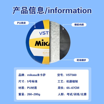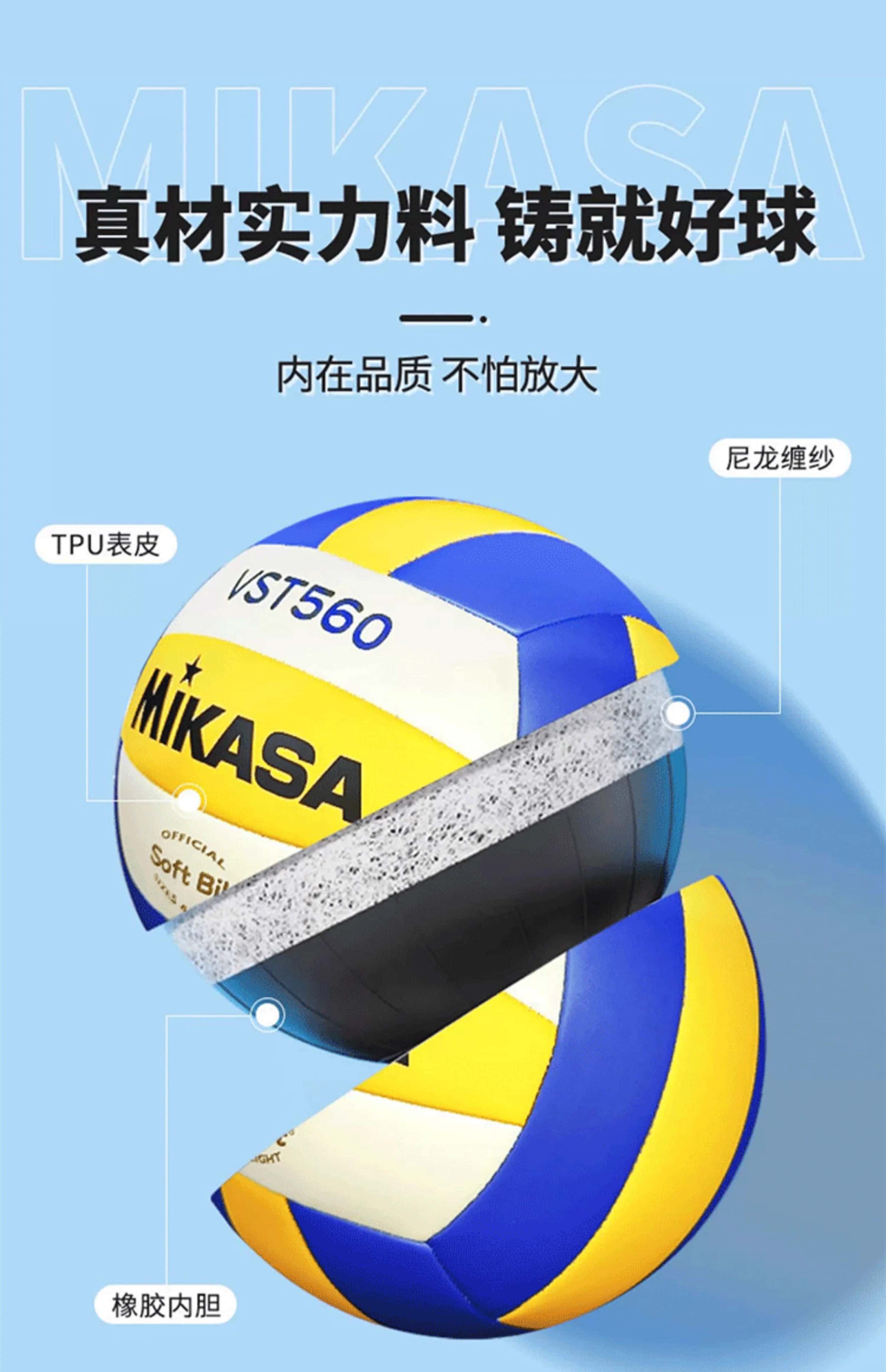mikasa/米卡萨中考训练排球5号初中生软式硬排比赛五号VST560中学