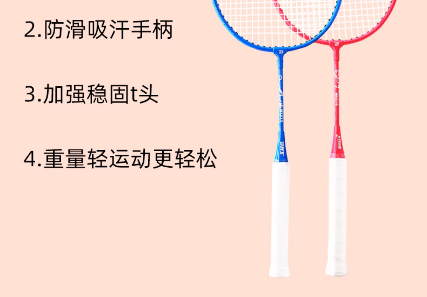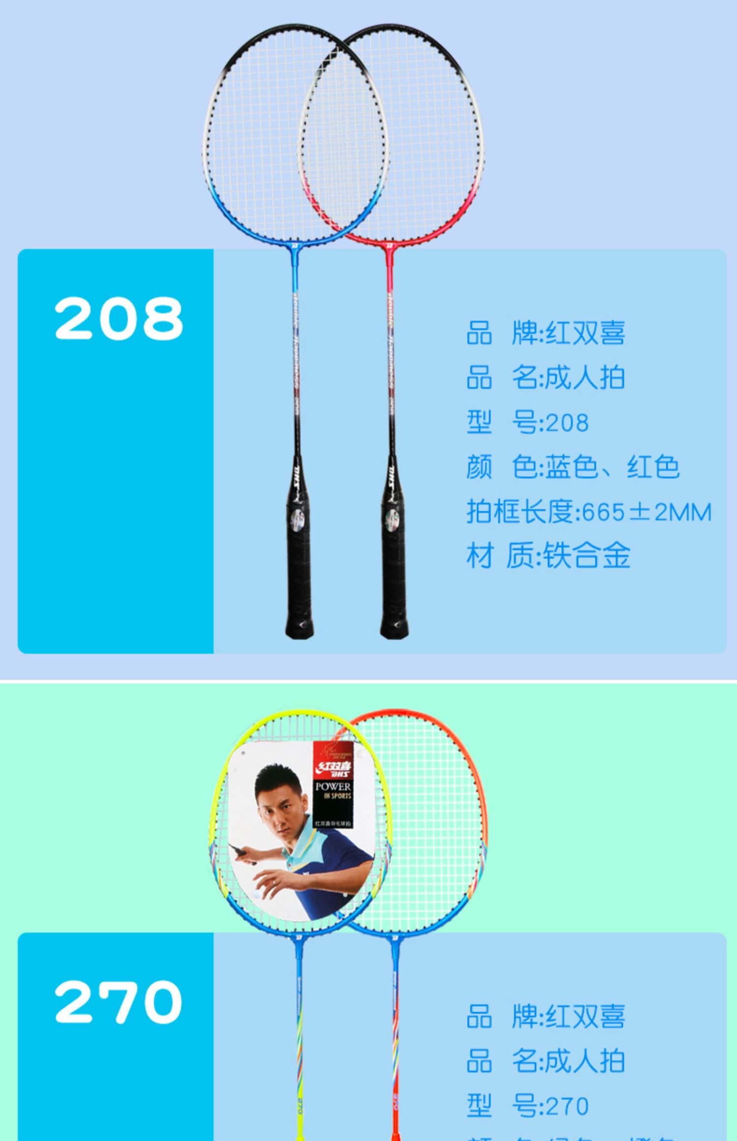 红双喜羽毛球拍儿童小学生3-12岁初学者双拍成人正品耐用2支装