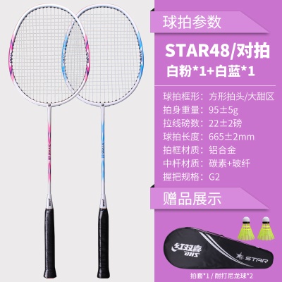 红双喜羽毛球拍超轻复合碳素成人进攻专业耐用型双拍儿童耐打套装