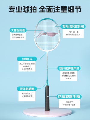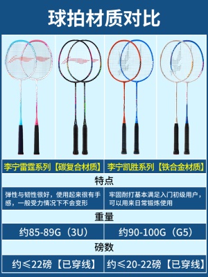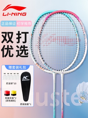 李宁羽毛球拍正品旗舰店官方碳素纤维超轻套装单双拍成人官网球拍