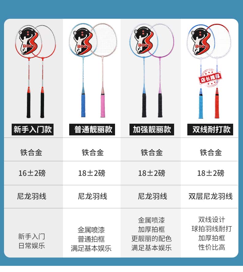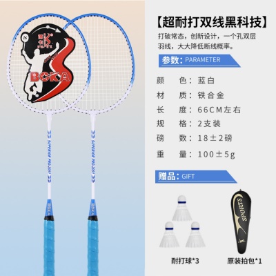 博卡羽毛球拍成人双拍套装情侣儿童学生超轻超耐打耐用铝合金室外