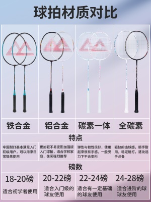 官方匹克羽毛球拍正品旗舰店单双拍超轻全碳素纤维专业级女生套装