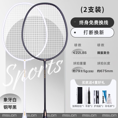美狮龙羽毛球拍官方正品耐用旗舰专业女超轻碳素纤维单双拍套装全