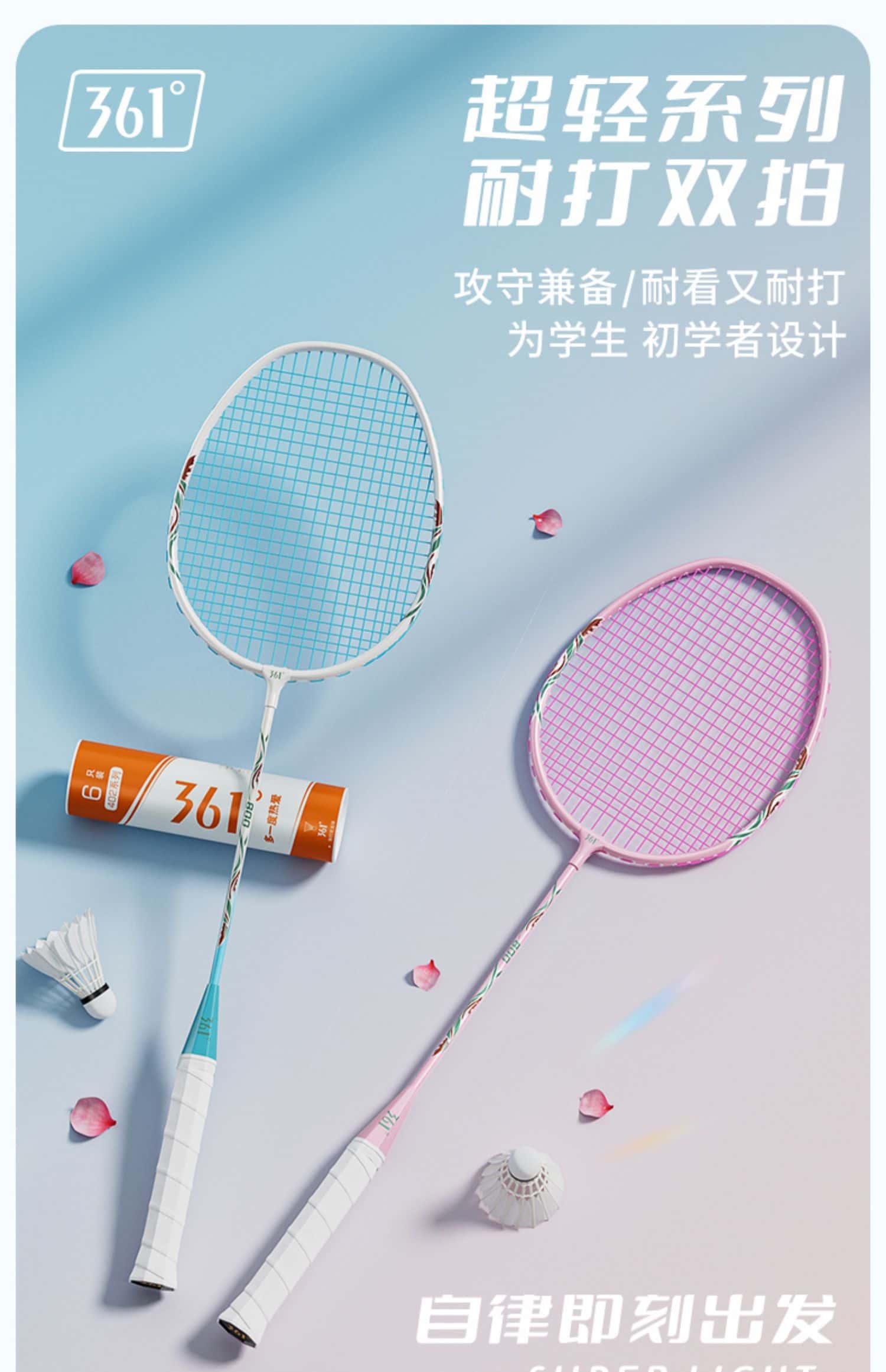 361度羽毛球拍正品旗舰店全碳素超轻双拍耐用型儿童成人单拍套装