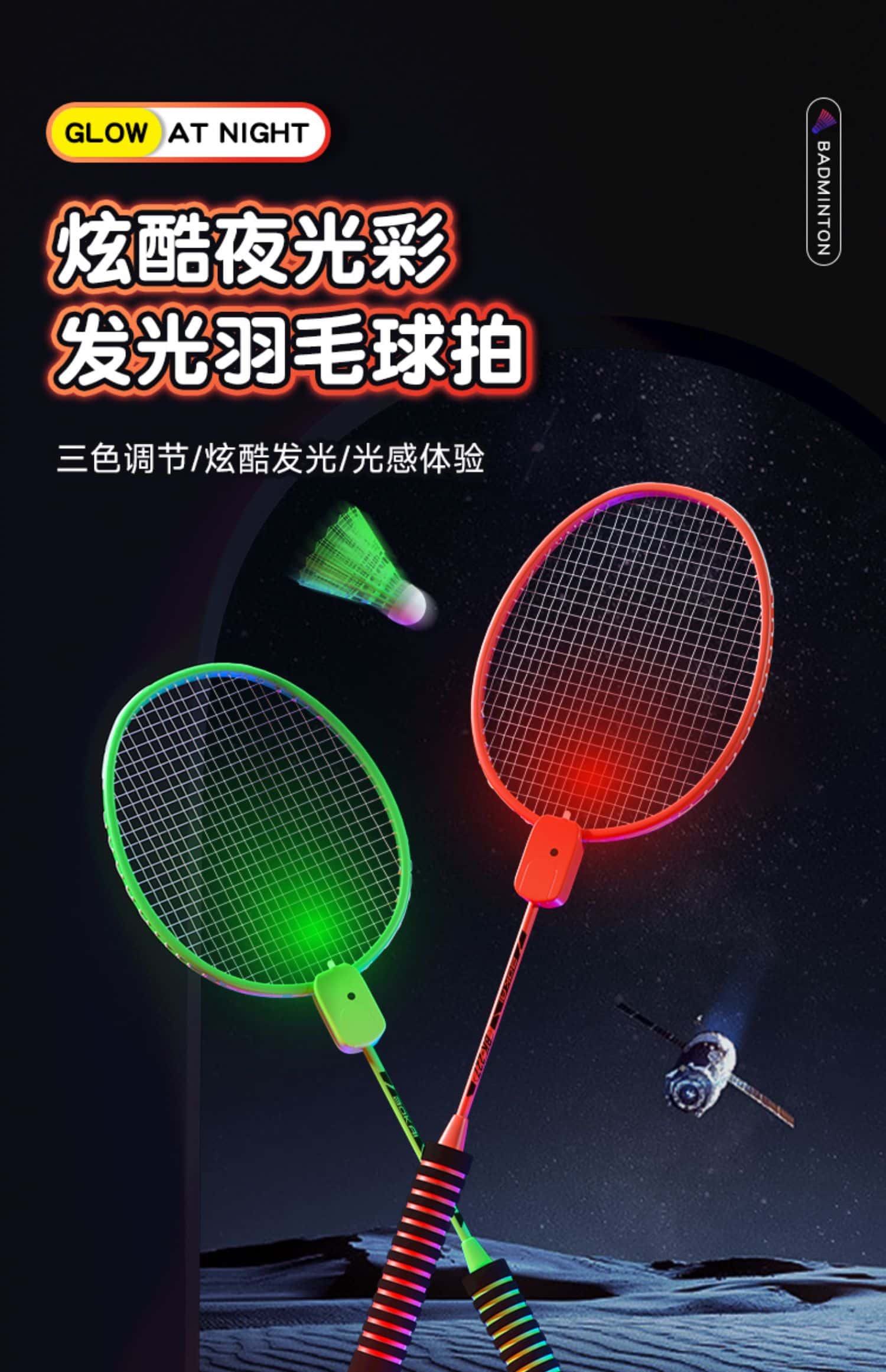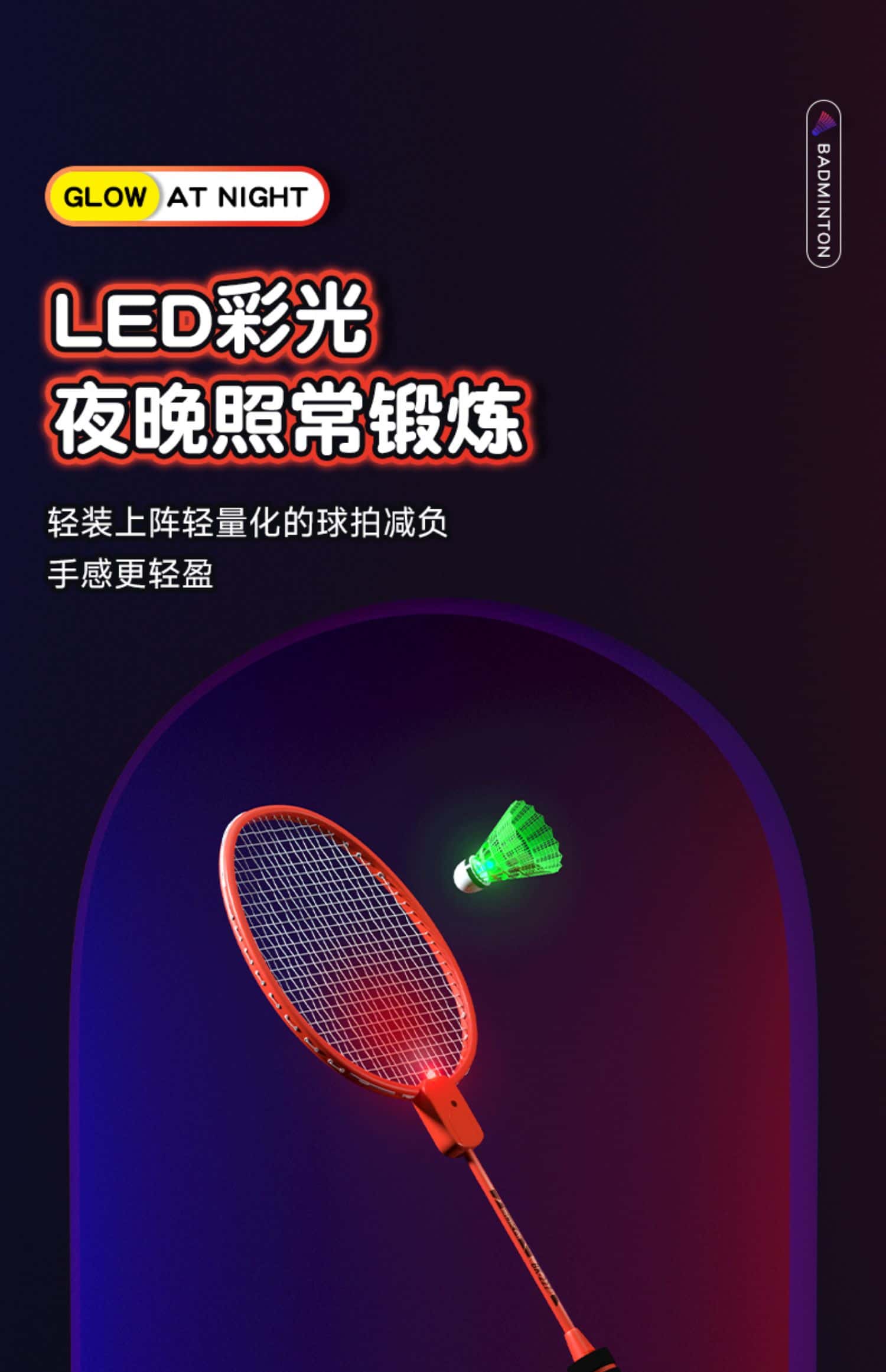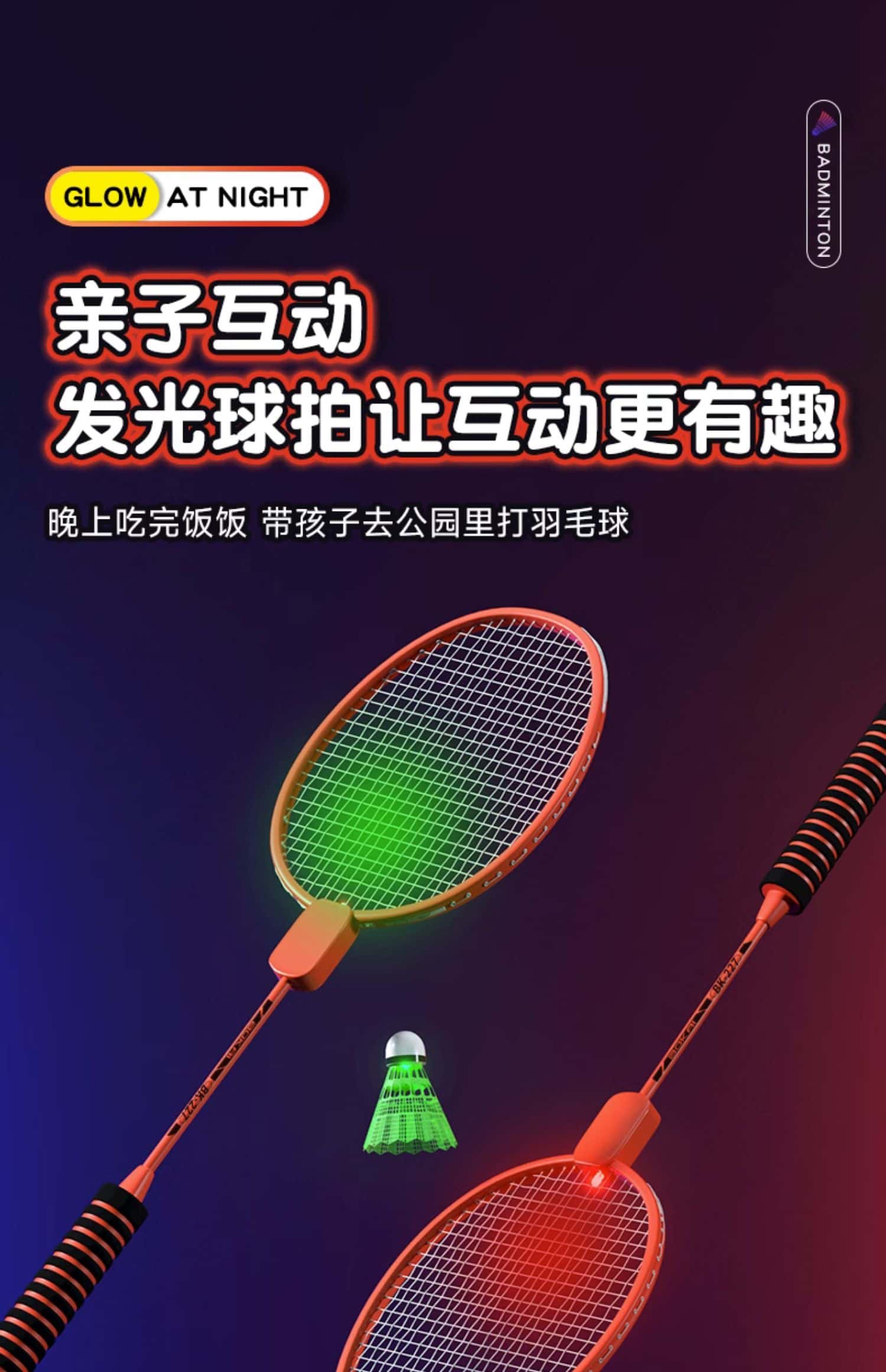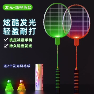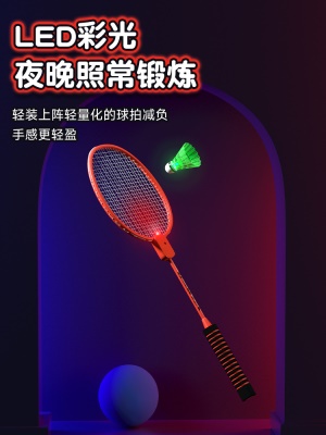 发光羽毛球拍正品夜光户外运动训练夜间成人儿童专业超轻耐用套装