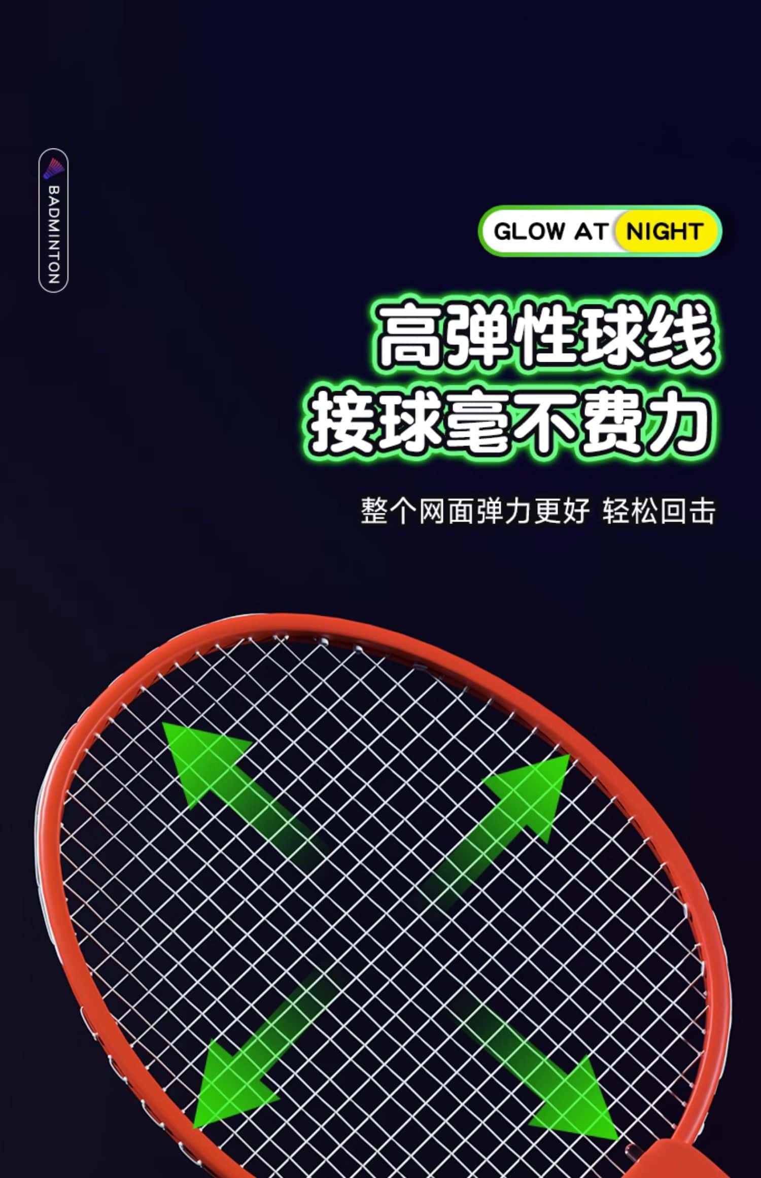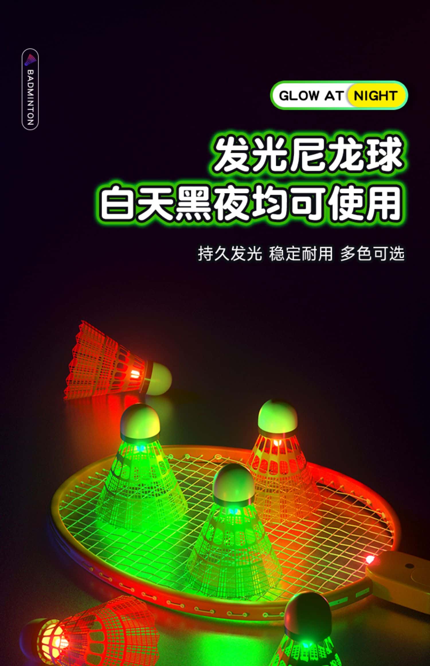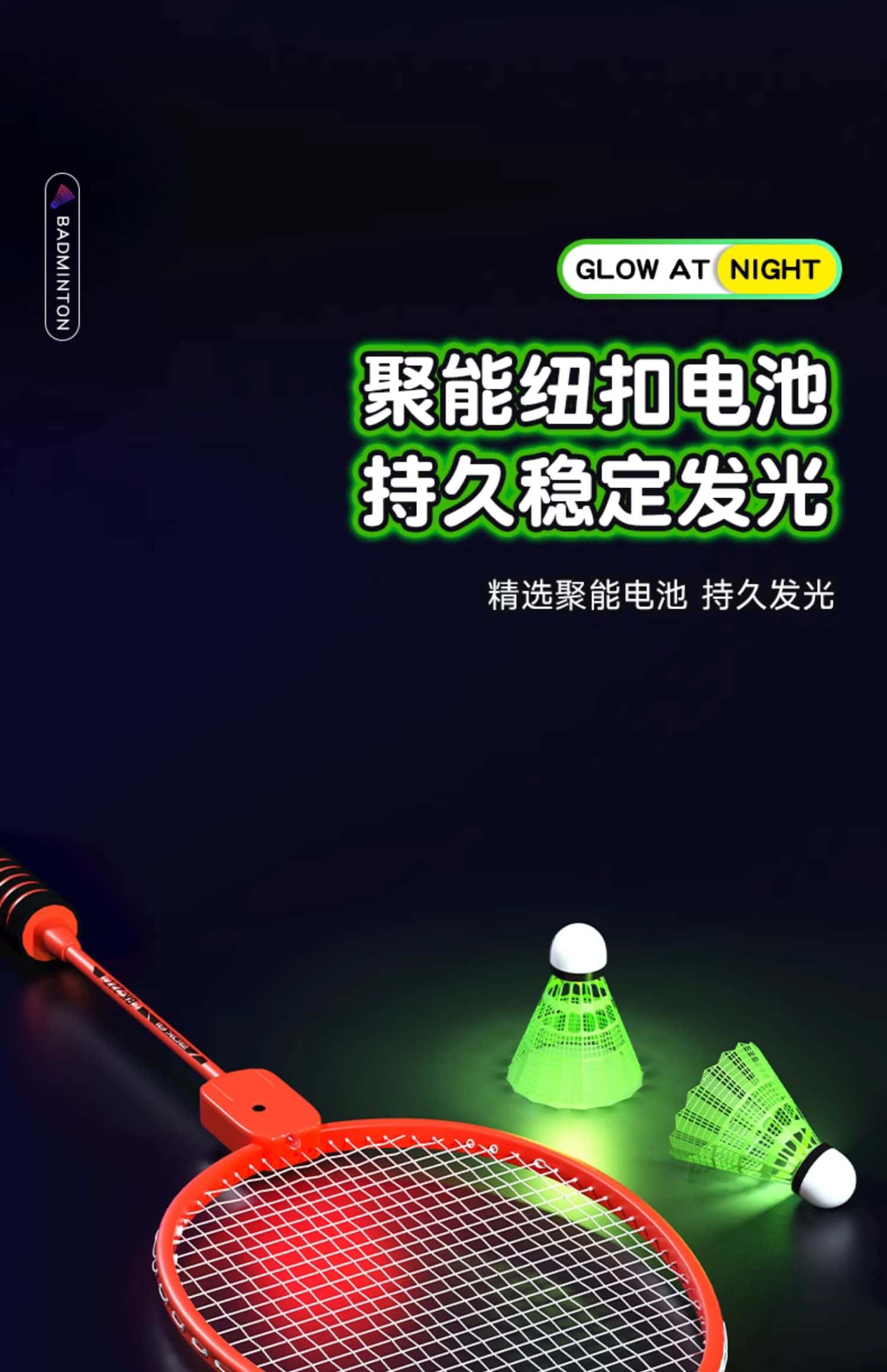 发光羽毛球拍正品夜光户外运动训练夜间成人儿童专业超轻耐用套装