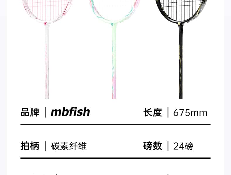 mbfish鲨跃超轻全碳素纤维羽毛球拍学生体育课耐打专业级新手女生