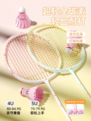 羽毛球拍正品旗舰店超轻碳素女生专业进攻耐用型双拍儿童耐打套装