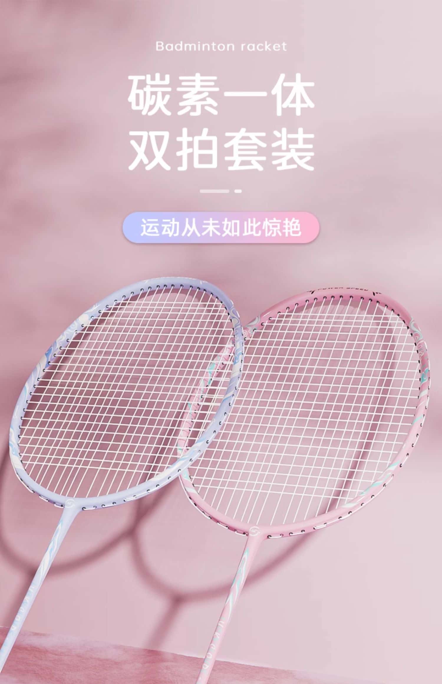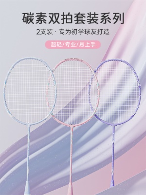 羽毛球拍正品旗舰店超轻碳素女生专业进攻耐用型双拍儿童耐打套装